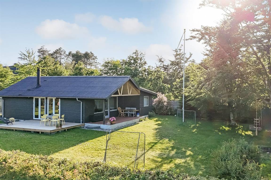DraußenDie Ferienunterkunft liegt auf einem 1264 m² großen Naturgrundstück. Die Entfernung zum Meer beträgt 250 m. Die nächste Einkaufsmöglichkeit liegt 3000 m entfernt. Es steht ein offenes Terrassenareal zur Verfügung. Außerdem gibt es überdachte Terrasse. Schaukel. Fußballtor.Lagerfeuerstelle. Außendusche. Es steht ein Grill zur Verfügung. Parkplatz auf dem Grundstück.