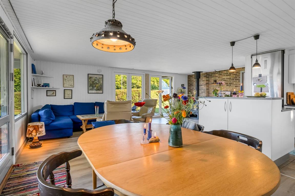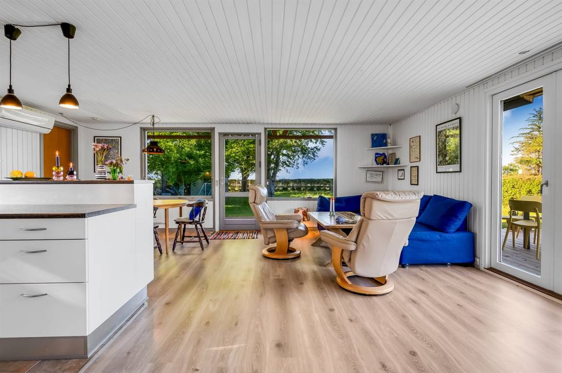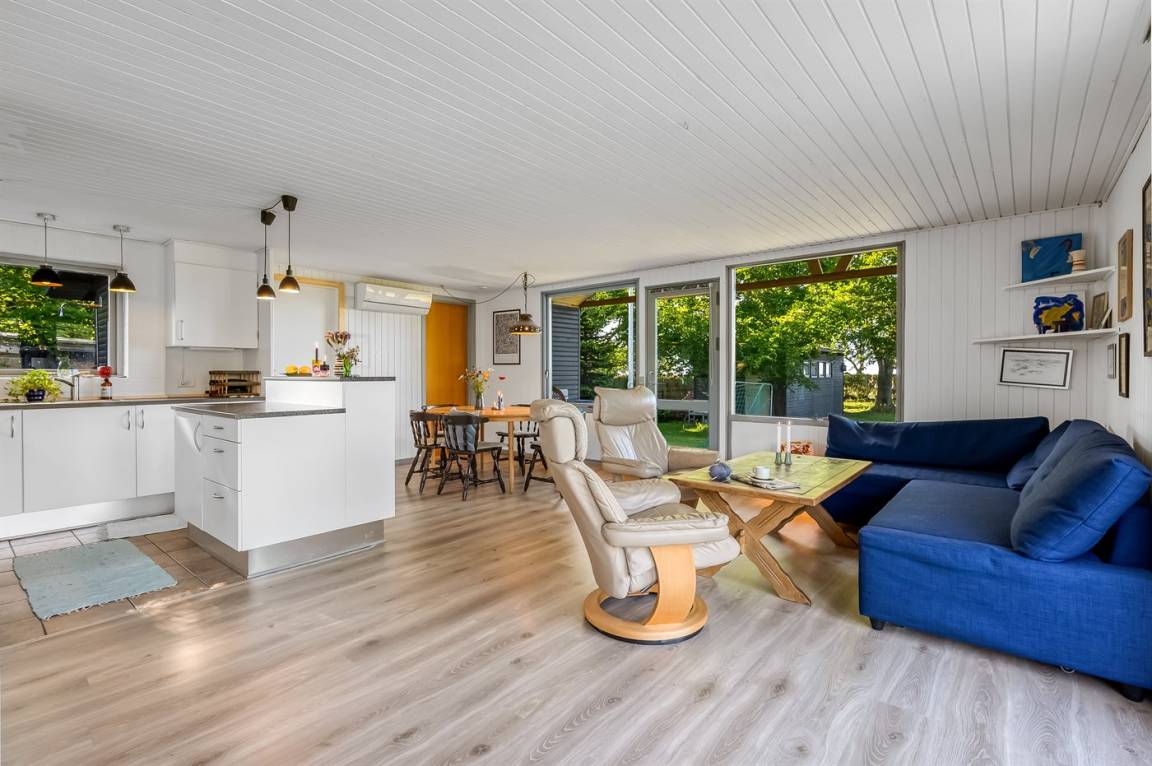 Mit einer guten Lage – mitten in der herrlichen und ruhigen Natur bei Gjerrild Nordstrand an der Spitze der Küste von Djursland – findest du dieses schöne und gut eingerichtete Ferienhaus, das sehr gepflegt ist und laufend modernisiert wurde. Obwohl das Meer 250 Meter entfernt liegt, befindet sich das Haus in erster Reihe, nur durch einen kleinen Kiesweg vom Wasser getrennt. Das sorgt für eine wunderbare Aussicht – sowohl vom Grundstück und der Terrasse als auch von innen.