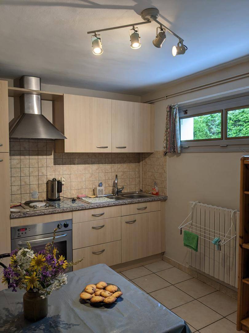 Ferienhaus im Haus des Eigentümers. Erdgeschoss: Küche, WLAN, 1 Schlafzimmer (1 Doppelbett, 1 Einzelbett), Badezimmer (Dusche), gemeinsame Waschmaschine. Private Terrasse. Gemeinsames Grundstück + Innenhof. Schwimmen + Wasseraktivitäten Lake Bourget 8 km. Thermalbäder von Aix les Bains 9 km. Alpin + Langlauf Revard 21 km, Féclaz 24 km. Vermietung von Freitag bis Freitag.