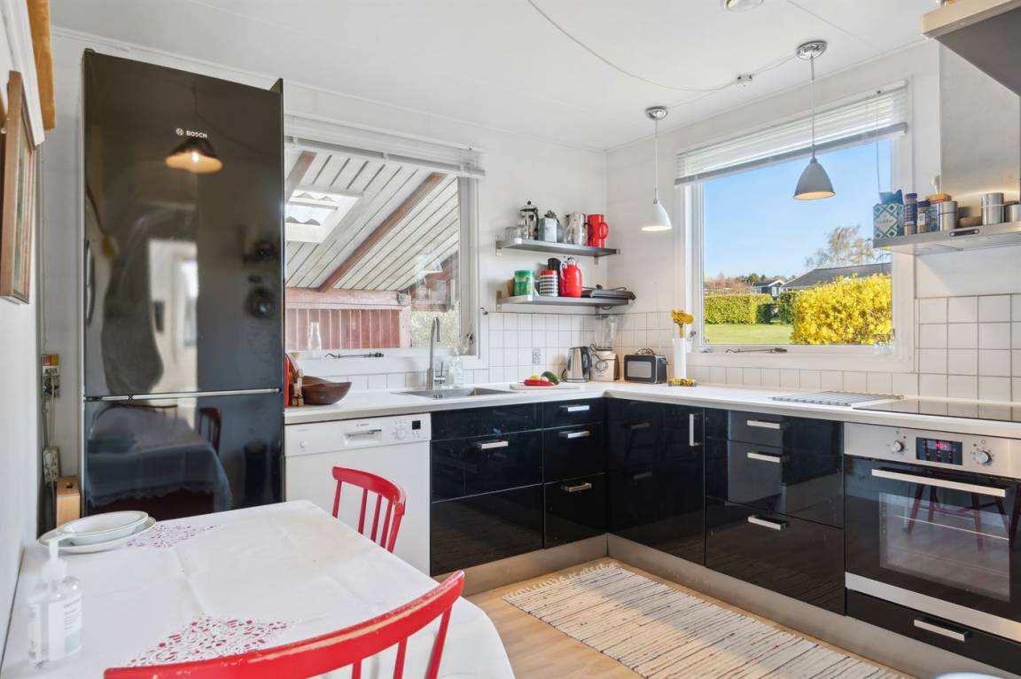 Ein wirklich schönes Ferienhaus mit einer ganz phantastischen Aussicht über den Fjord. Das Haus liegt in einer ruhigen und friedlichen Ferienhaussiedlung. Das Haus eignet sich für 6 Personen und die Schlafplätze verteilen sich auf 3 Zimmer mit Doppelbetten. Sie können die Betten auseinanderschieben und als Einzelbetten anwenden. Im Anbau finden Sie eine schöne Bibliothek - hier können Sie die Aussicht über den Fjord genießen und in Ruhe eines der vielen Bücher lesen. Ein geräumiges Esszimmer mit Panaoramaaussicht. Eine neuere Küche mit Essecke für 2 Personen. In diesem Ferienhaus können Sie die Seele baumeln lassen und neue Energie schöpfen.