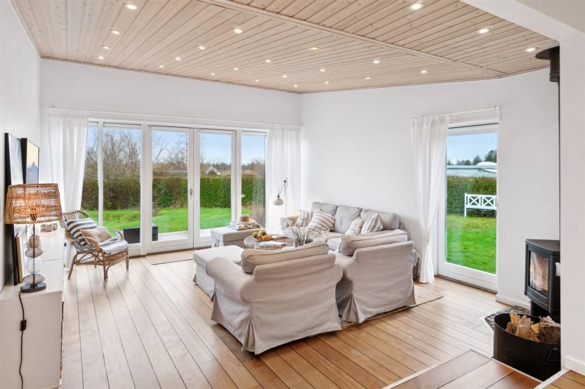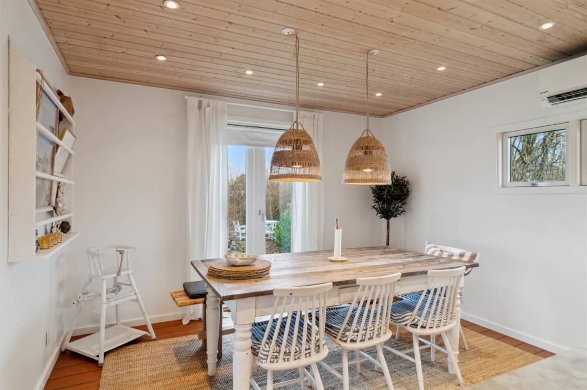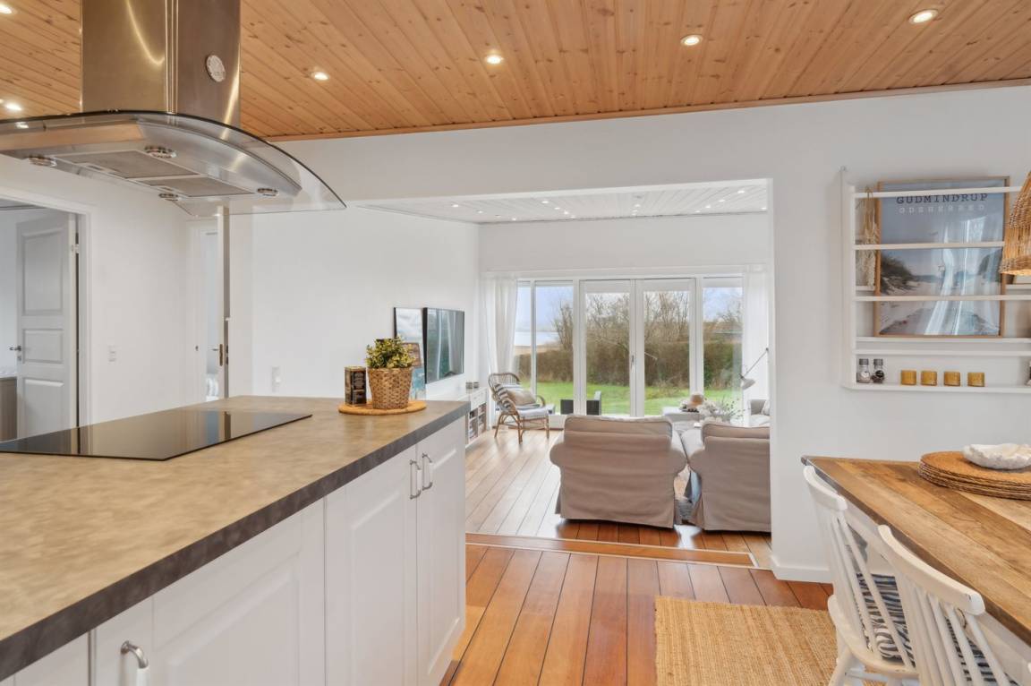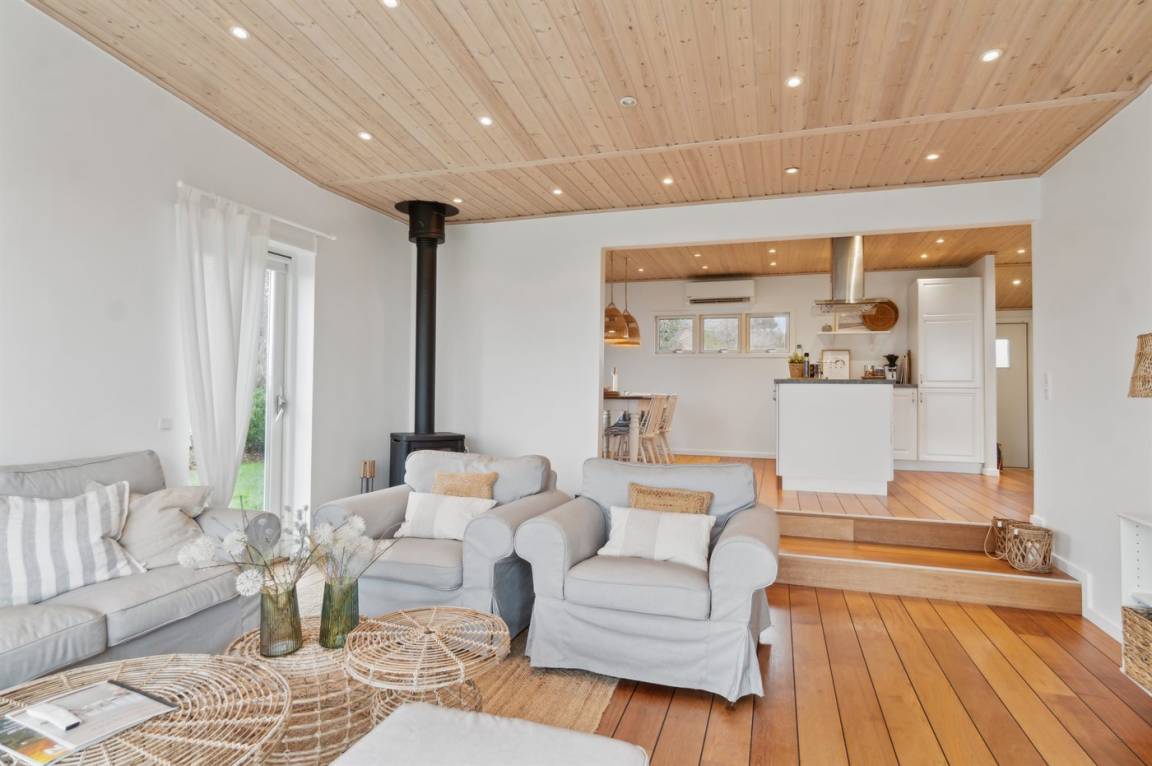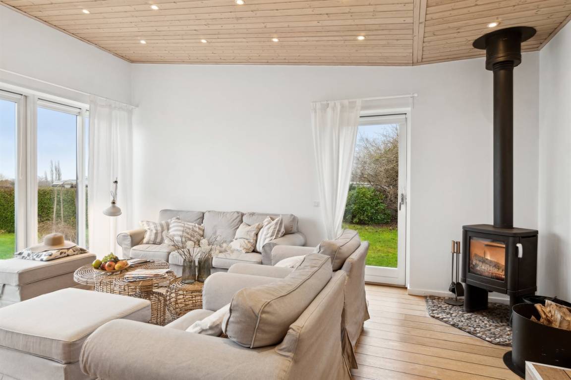 Dieses stilvoll und sommerlich eingerichtete Ferienhaus mit Blick auf den Fjord liegt in einer kleinen und ruhigen Ferienhaussiedlung, nur 175 Meter vom Wasser entfernt. Das Haus präsentiert sich hell und elegant mit viel Tageslicht durch die großen, nach Süden ausgerichteten Fensterpartien. Die großzügige Wohnküche, die offen mit dem Wohnzimmer verbunden ist, bildet den natürlichen Mittelpunkt für gemütliche Stunden mit Freunden und Familie. Von hier und vom Hauptschlafzimmer aus hat man einen schönen Blick auf den Lammefjord und die Halbinsel Tuse Næs.