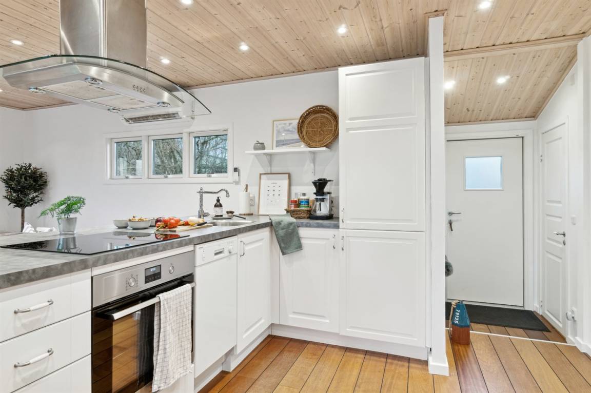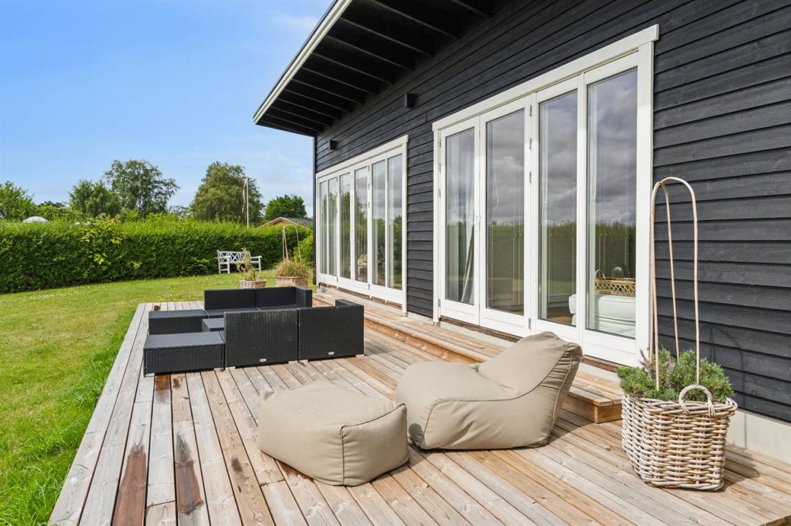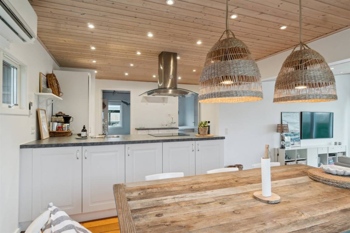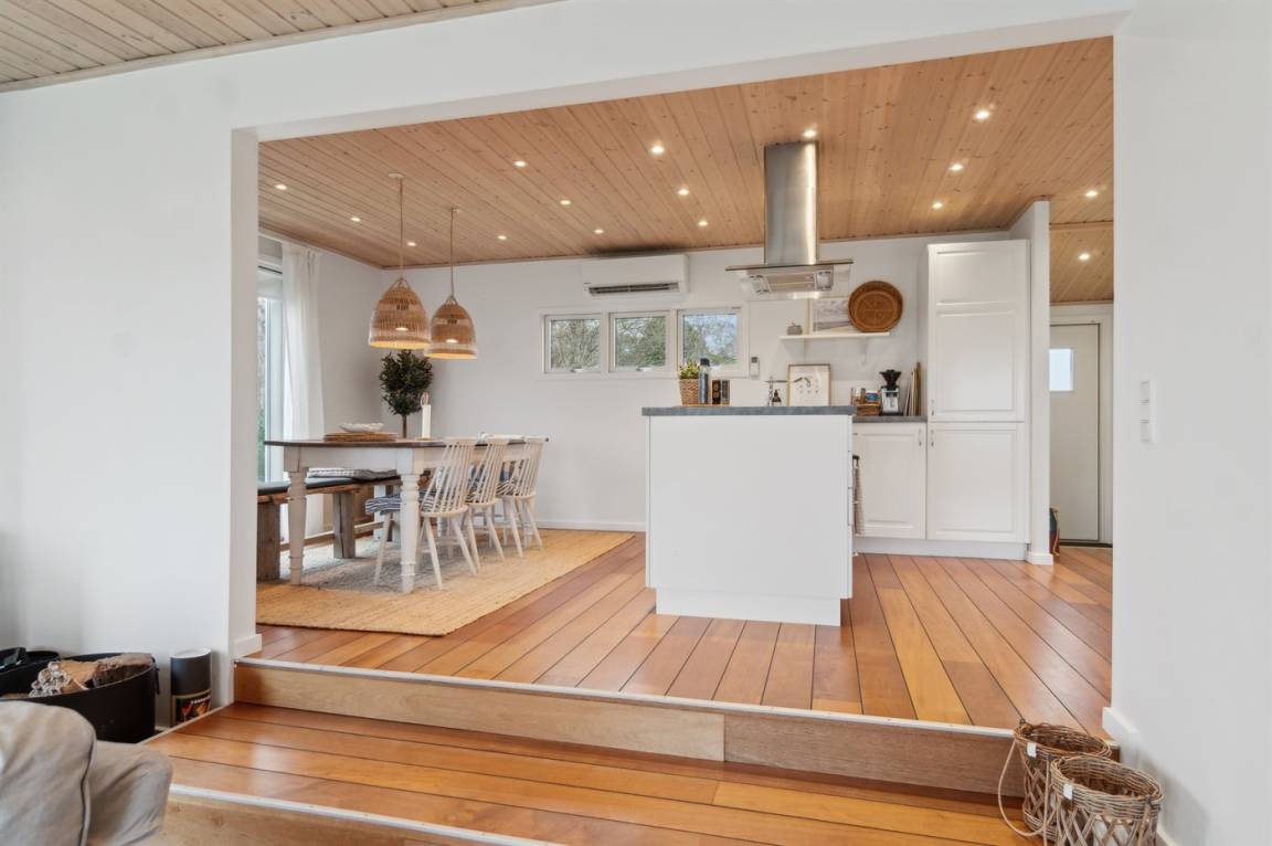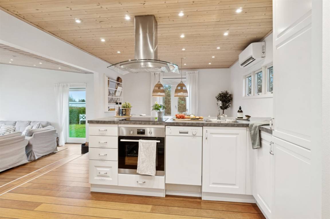 Dieses stilvoll und sommerlich eingerichtete Ferienhaus mit Blick auf den Fjord liegt in einer kleinen und ruhigen Ferienhaussiedlung, nur 175 Meter vom Wasser entfernt. Das Haus präsentiert sich hell und elegant mit viel Tageslicht durch die großen, nach Süden ausgerichteten Fensterpartien. Die großzügige Wohnküche, die offen mit dem Wohnzimmer verbunden ist, bildet den natürlichen Mittelpunkt für gemütliche Stunden mit Freunden und Familie. Von hier und vom Hauptschlafzimmer aus hat man einen schönen Blick auf den Lammefjord und die Halbinsel Tuse Næs.