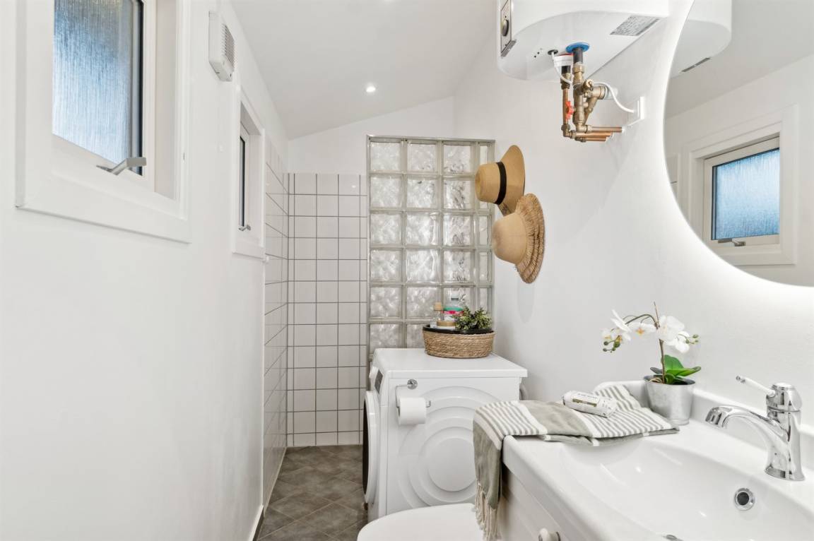 Das Haus wird umweltfreundlich mit einer Luft-Luft-Wärmepumpe beheizt und verfügt außerdem über einen Kaminofen für gemütliche Abende.
