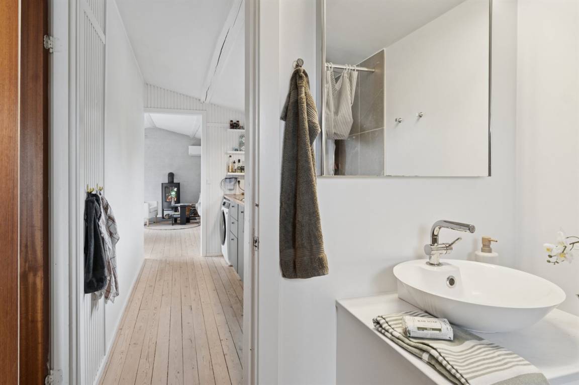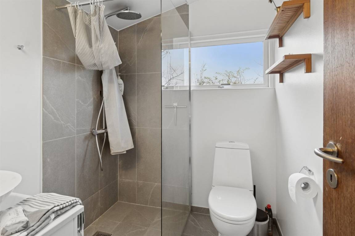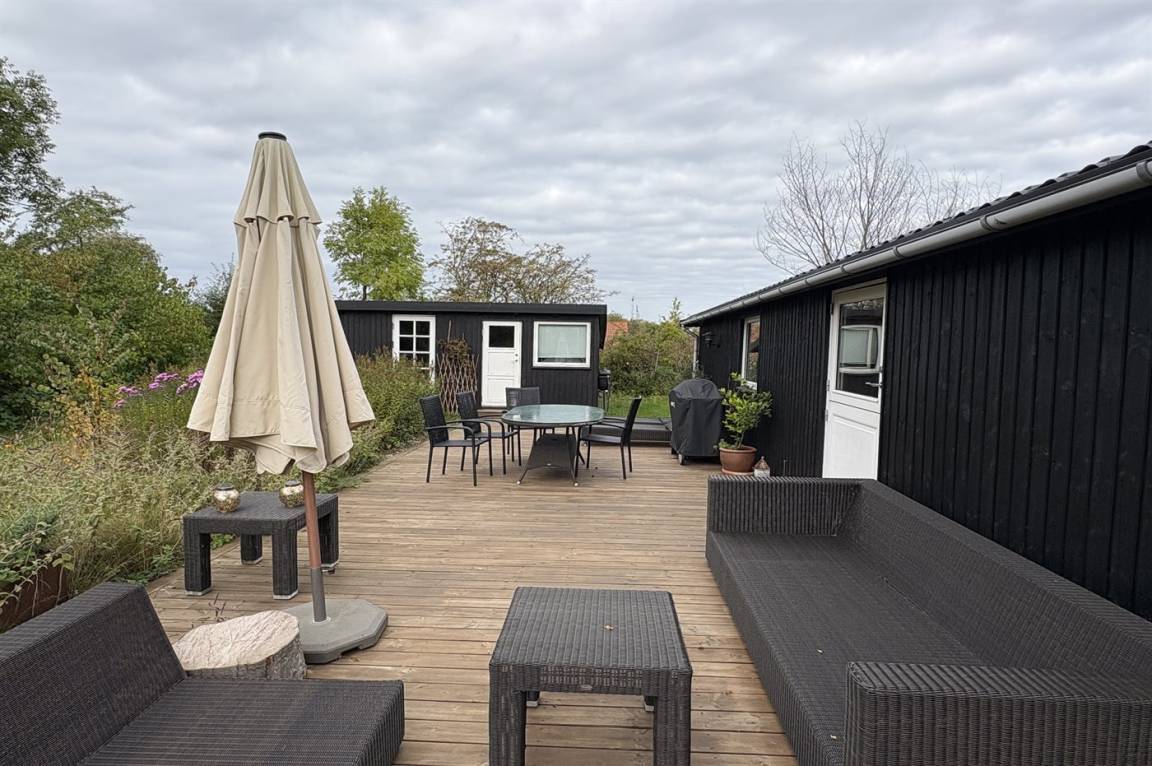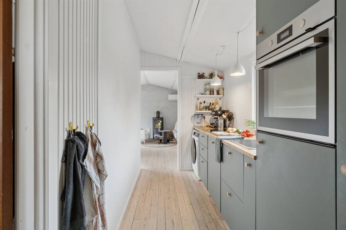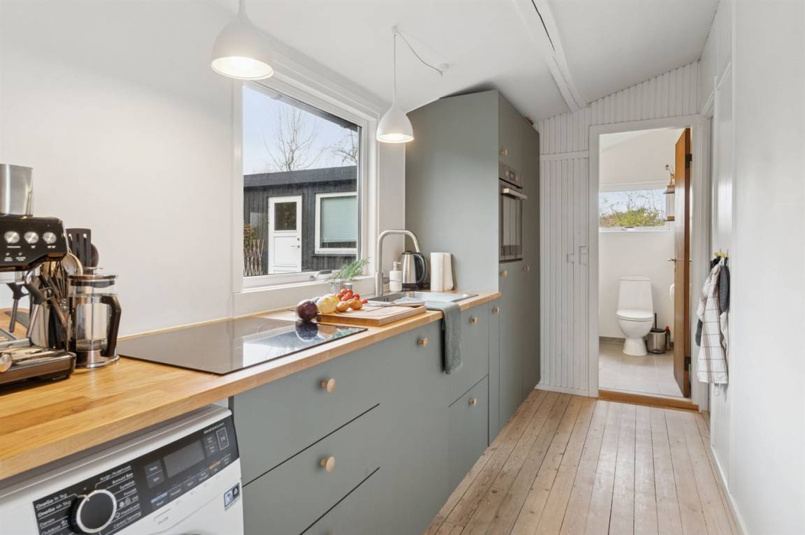 Das Haus verfügt über eine schöne Küche in offener Verbindung mit dem Wohnzimmer und dem Essbereich. Das große Fenster im Wohnzimmer kann geöffnet und zur Seite geschoben werden, sodass das Leben im Freien nach innen geholt wird und du freien Zugang zur Terrasse hast. Rund um das Haus gibt es schöne Terrassen und eine attraktive Bepflanzung, die dazu einlädt, draußen zu sein und die Sonne sowie das gute Wetter zu genießen.
