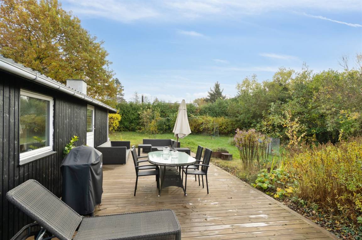 DraußenDie Ferienunterkunft liegt auf einem 1222 m² großen Gartengrundstück. Die Entfernung zum Fjord beträgt 300 m. Es gibt einen Badesteg in der Nähe. Die nächste Einkaufsmöglichkeit liegt 4750 m entfernt. In einem Abstand von 11600 m gibt es einen Golfplatz. Es steht ein 68 m² Terrassenareal zur Verfügung. Trampolin. Es steht ein Grill zur Verfügung. Parkplatz auf dem Grundstück.