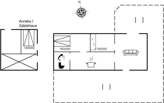Im Haus selbst gibt es zwei Schlafzimmer – eines mit einem Doppelbett und das andere mit einem Schlafsofa (Maße: 130x200 cm). Im gemütlichen Gästehaus befindet sich ebenfalls ein Doppelbett.