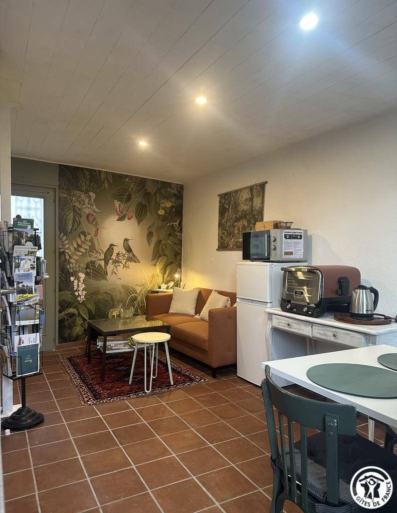 Besuchen Sie jetzt das Mogador-Haus. Diese kleine Gîte mit 28 m² auf zwei Ebenen lädt zum Verweilen ein. Die Dekoration ist farbenfroh und funktional. Es verfügt über einen unabhängigen Eingang mit zwei Räumen, darunter das Wohnzimmer und das Schlafzimmer.