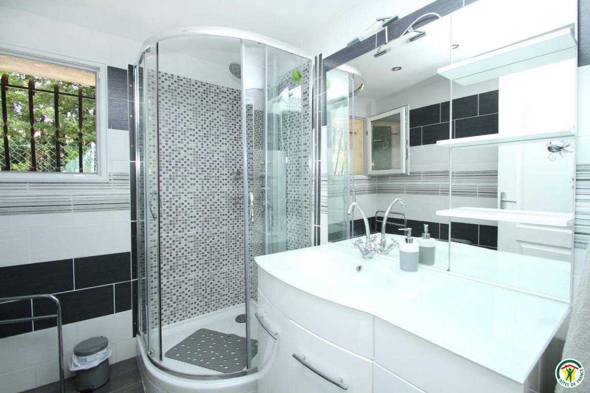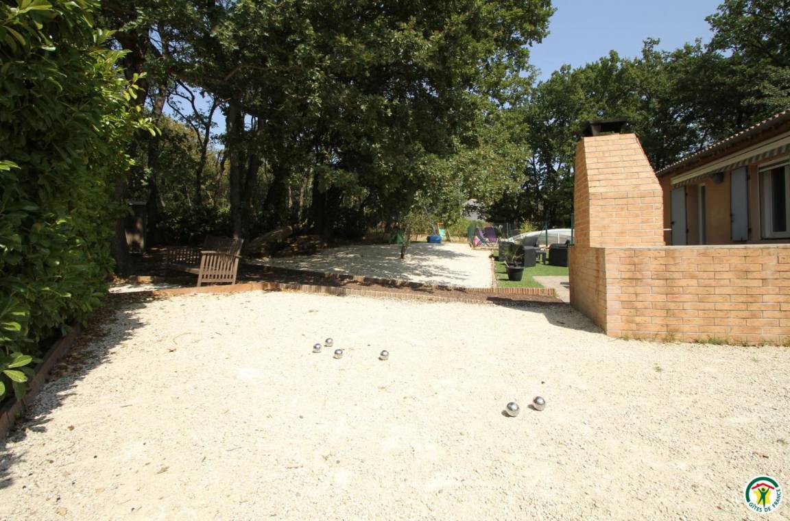Die Ferienunterkunft ist über einige wenige Treppenstufen zugänglich und darüber hinaus vollkommen ebenerdig gelegen: Küche, Aufenthaltsraum mit Wohnzimmerbereich, 3 Schlafzimmer (1 Bett 140 cm) (1 Bett 140 cm) (2 Betten 90 cm), Bad mit Wellness-Dusche, WC. Klimaanlage mit Heizfunktion. Eigener Swimmingpool (8 x 4 m), von April bis September geöffnet, Erwärmung durch eine Swimmingpool-Überdachung, Tischtennisplatte, Boule-Platz, Spiele für Kinder, amerikanischer Billardtisch.