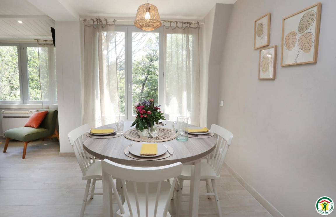„The owners welcome was great, useful and they are very kind. Our gite didn't have a terrace in front. So we had to walk into the garden to have breafast or dinner. The garden has several options to sit, lay down or eat. Very relaxed nearby the two streams coming of the hills around. The gite has large windows in the living room looking out of the tree. All you can think of to have a pleasant stay was there. At the terrace at the swimmingpool is a roof where you can change clothes and have a barbecue. Once you have been there you'll never go anywhere else.“