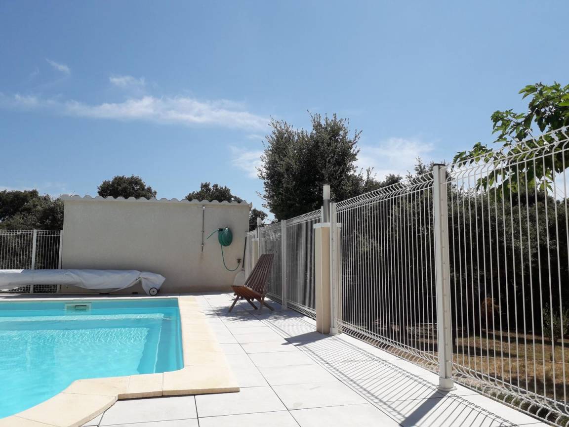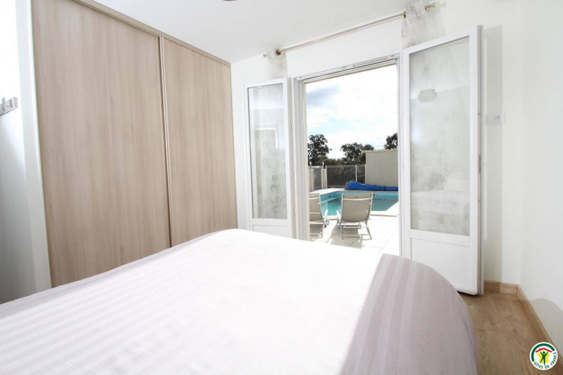 Ebenerdig gelegenes Haus. Großes Wohnzimmer mit halboffener Küche. 3 Schlafzimmer (1 Bett 140 cm)(1 Bett 140 cm)(2 Betten 90 cm). Bad mit Dusche, separates WC, Klimaanlage. Swimmingpool und Garten mit Bäumen. Das Herrichten der Betten und die Handtücher sind im Preis inbegriffen.
