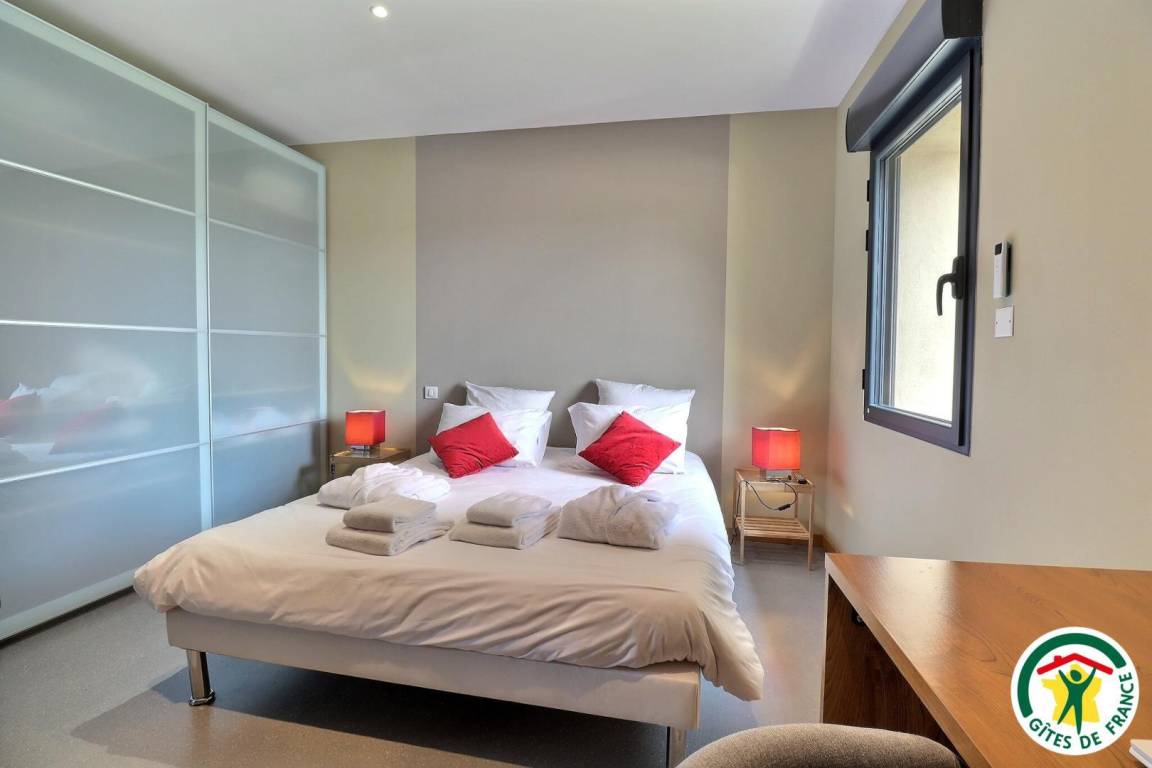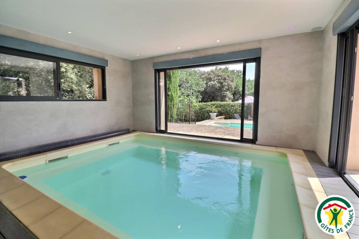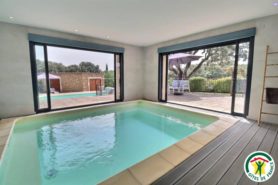 Unabhängiges Haus. Erhöhtes Erdgeschoss (Zugang über 4 Stufen): große ausgestattete Küche, Wohnzimmer (Sofa, Sessel, TV), ein Schlafzimmer mit einem Doppelbett (1x160), privates Badezimmer (italienische Dusche, Waschbecken) und Ankleideraum, Waschküche (Trockner). ), Toilette. Obergeschoss: 2 Schlafzimmer mit jeweils einem Doppelbett (1x160)(1x160), eines davon mit Ankleideraum und eigener Terrasse, Badezimmer (italienische Dusche, Waschbecken, Toilette). Außenpools 3x6m, Tiefe 1m4 (Mai bis September, Rollladen + Alarm) und Innenpools 4x4m, Tiefe 1m² (ganzjährig zugänglich, im Winter beheizt). Sie können das Hallenbad sowohl im Sommer durch Öffnen der Erkerfenster, die auf eine Terrasse rund um eine Rasenfläche führen, als auch den Rest des Jahres bei regnerischem oder windigem Wetter genießen. Vollständig umzäunter Garten mit Bäumen. Tischtennisplatte vorhanden. Reversible Fußbodenheizung mit Kühler im Sommer.