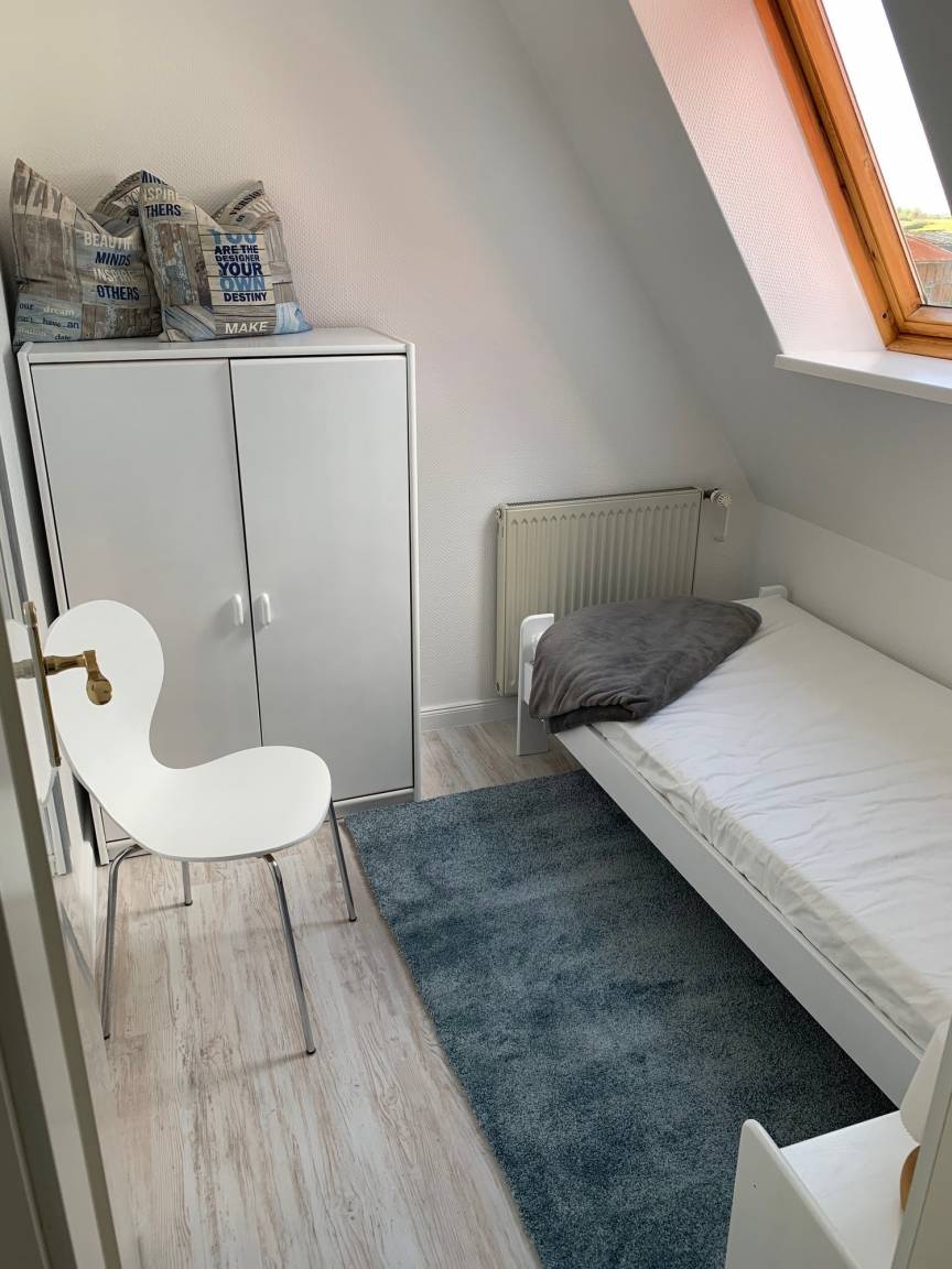 Unsere Ferienwohnung "Seegras" liegt an der Schlei, ideal für 3 Personen, mit 2 Schlafzimmern ( 1 x Doppelbett 180 x 200 cm und 1 x Einzelbett 90 x 200 cm).