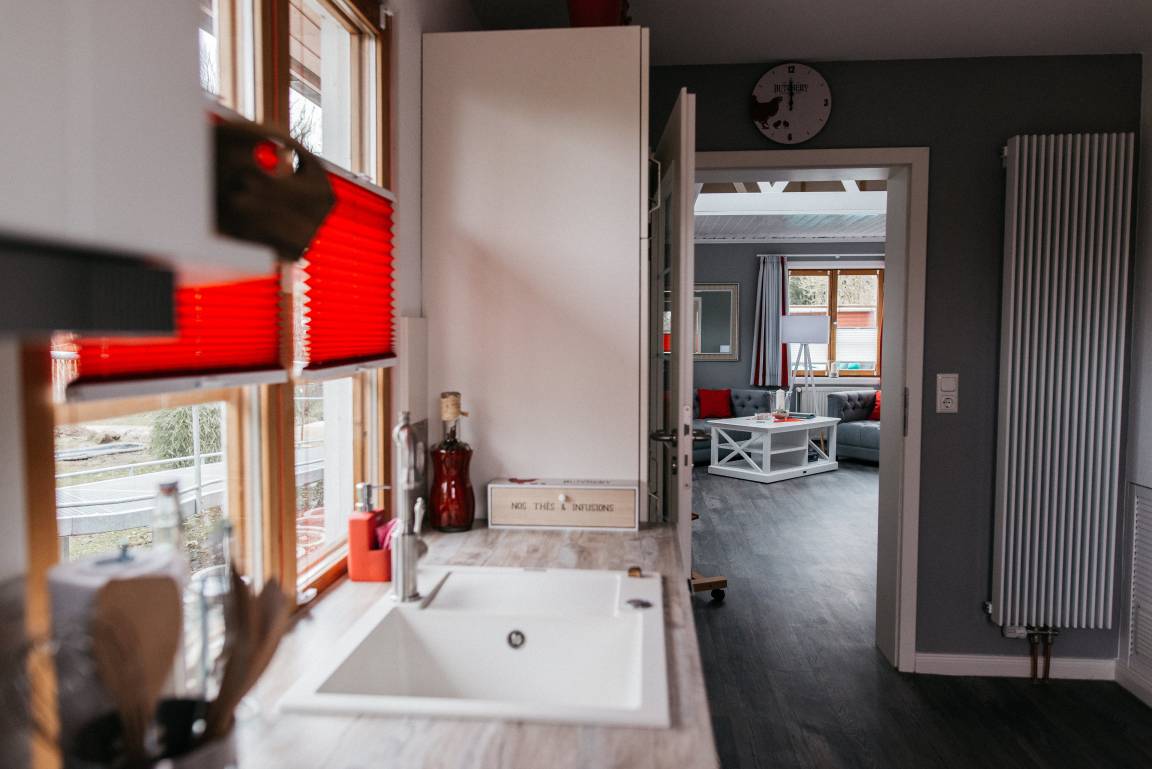 Das kleine Ferienhaus "Kleiner Onkel" im Ferienort Grödersby ist ideal für Ihren Urlaub zu zweit. Das kleine Haus verfügt über einen großzügigen Wohn- und Schlafraum, eine moderne Küche und ein barrierefreies Bad. So können hier auch Rollstuhlfahrer und Personen mit eingeschränkter Mobilität ihren Urlaub in grüner Umgebung genießen.