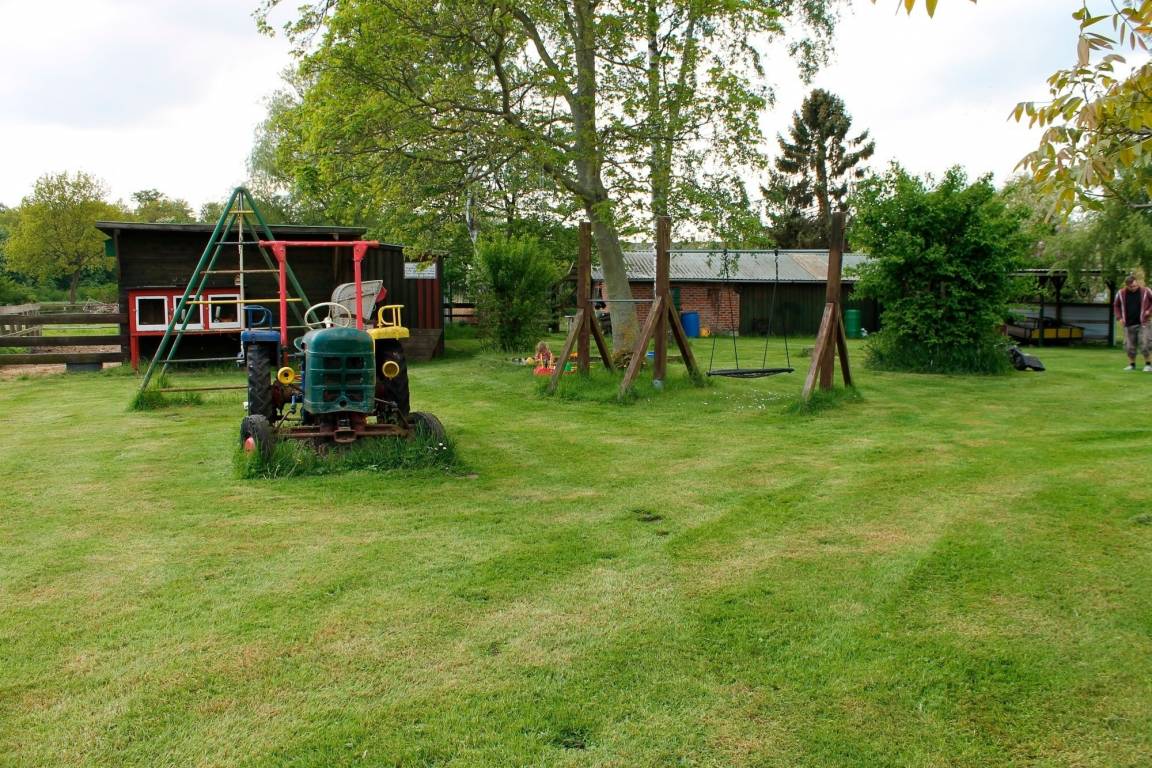 Hof: Im Garten befindet sich ein Kinderspielplatz.