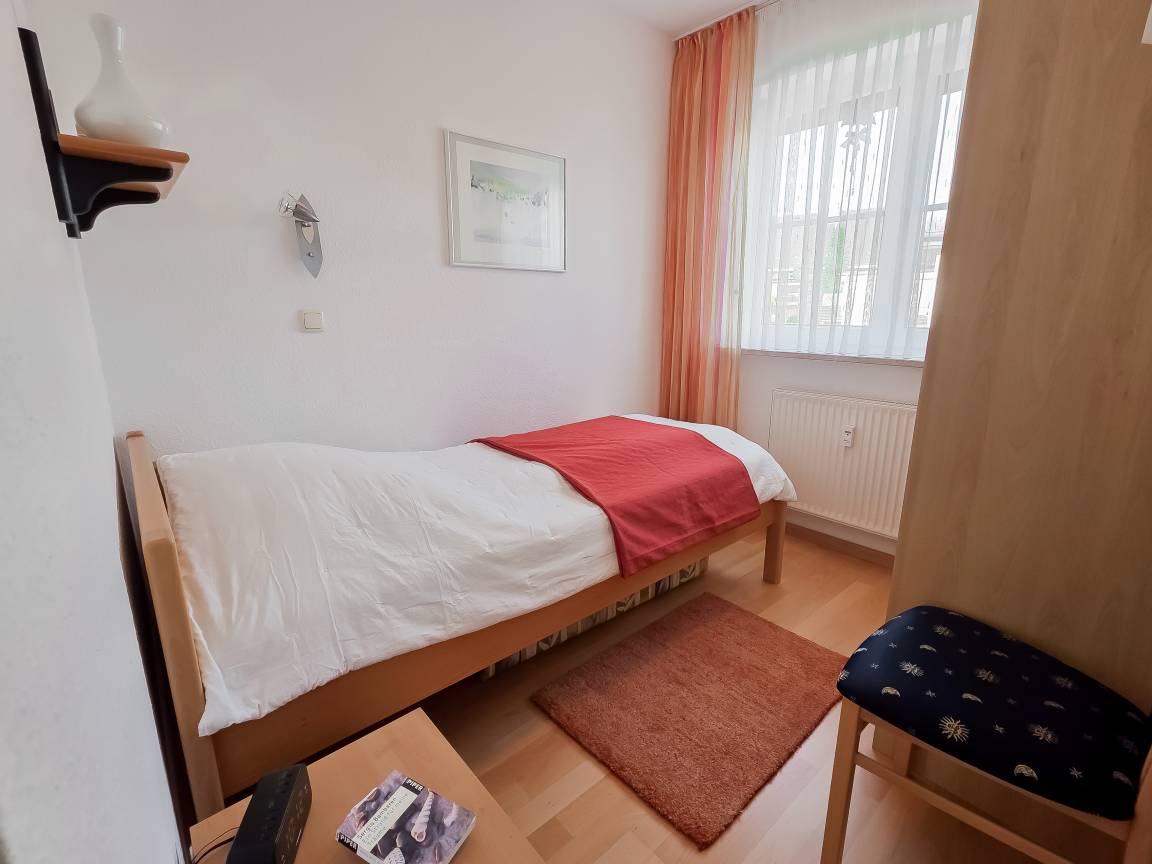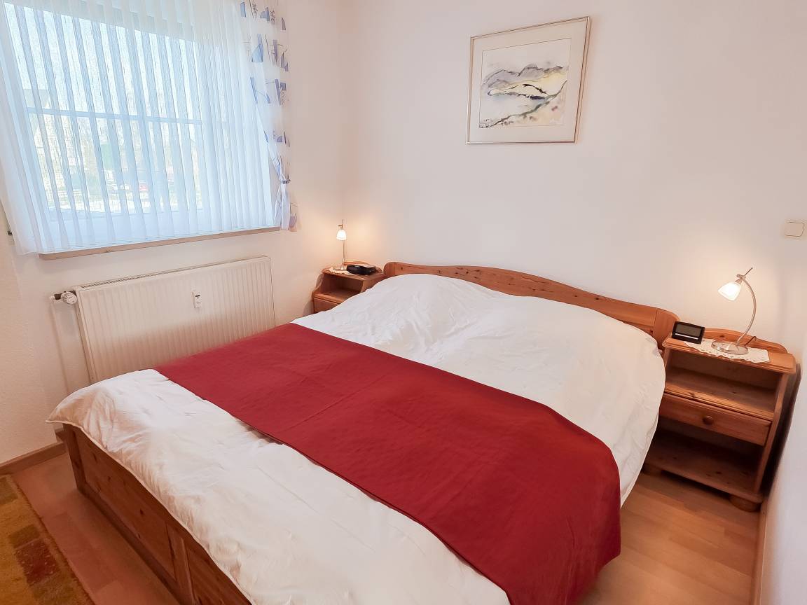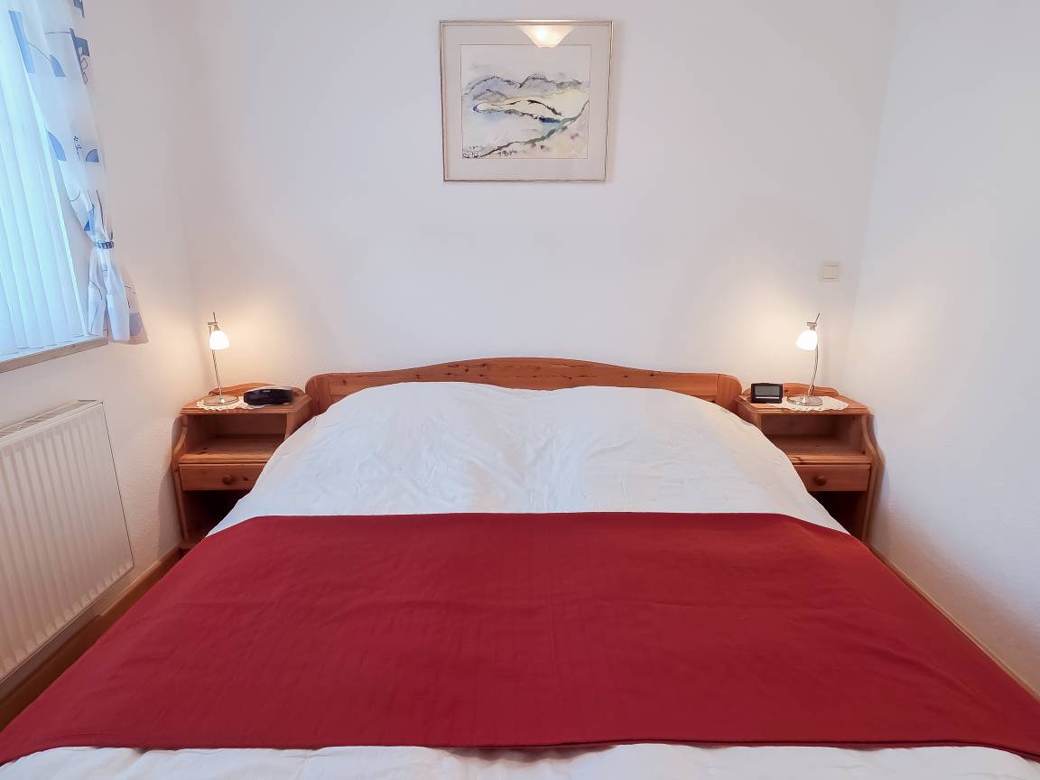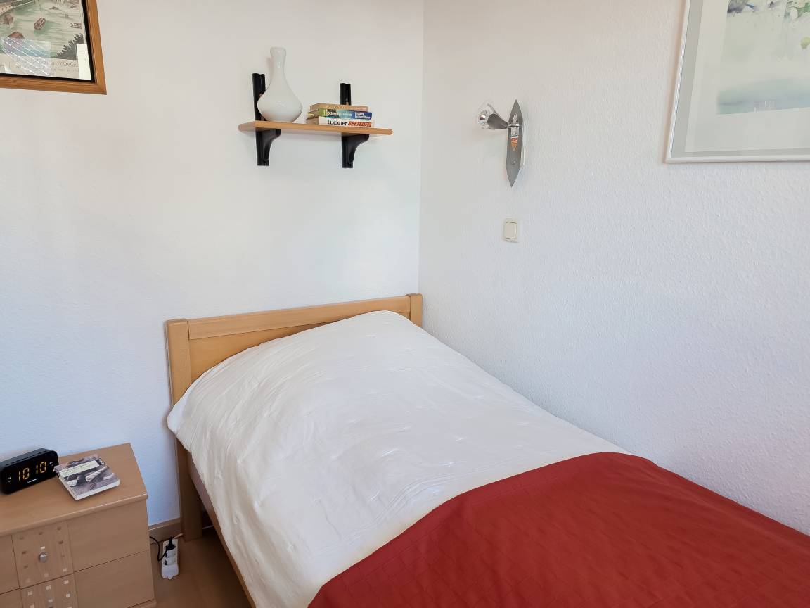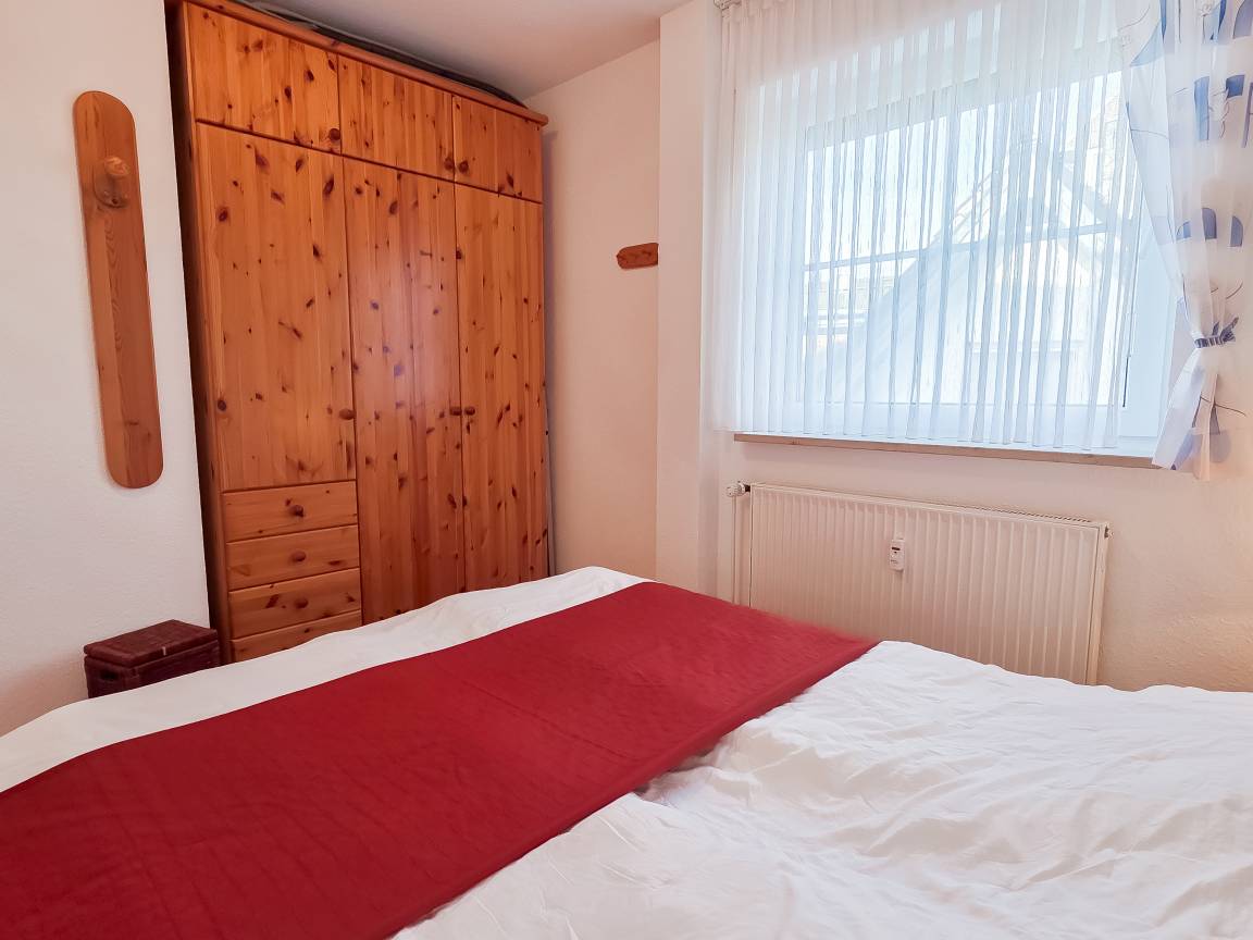 Das 1. Schlafzimmer verfügt über ein komfortables Ehebett und Kleiderschrank. Das zweite Schlafzimmer ist mit einem gemütlichen Einzelbett möbliert.