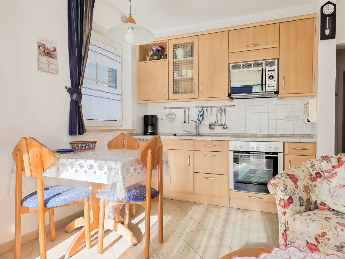 Die moderne Küche ist mit 4-Platten-Herd, Backofen, Kühlschrank, Mikrowelle und allen üblichen elektrischen Geräten sehr gut ausgestattet.
