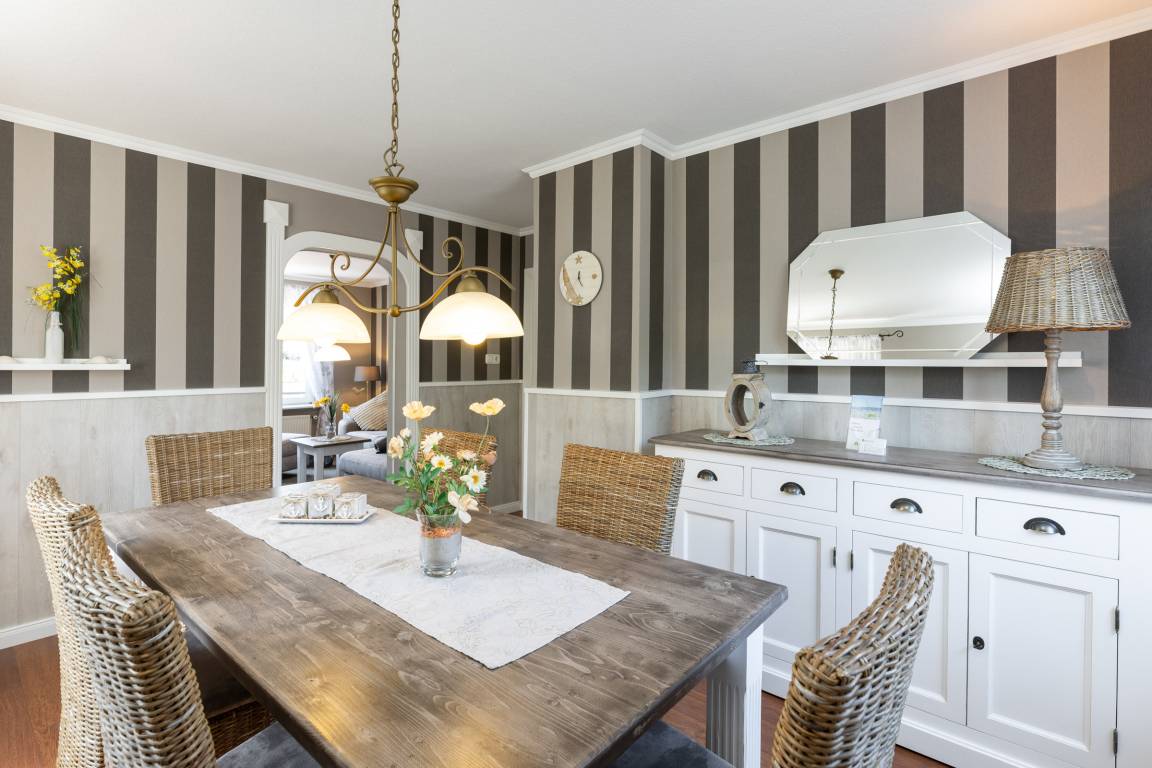In diesem besonders ansprechenden Komfort-Ferienhaus mit 3 Schlafräumen finden auf großzügigen 94 m² fünf Personen (+ Kleinkind) viel Platz.