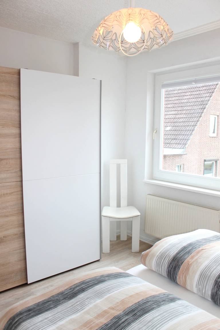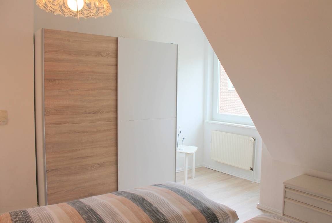 Die Wohnung Nr. 4 im Gästehaus Siebrecht ist ein großzügig eingerichtetes 3-Zimmer-Appartement. Es liegt in der 2. Etage und bietet Platz für bis zu 5 Personen. Die Wohnfläche der ca. 72 m² großen Unterkunft verteilt sich auf ein Wohnzimmer, die Küche, zwei separate Schlafzimmer sowie das Badezimmer. Das Wohnzimmer ist mit einer großen gemütlichen Sitzecke, Musikanlage sowie einem TV ausgestattet, des weiteren befindet sich im Erker des Wohnzimmers der Essplatz. Die Küche ist mit einem