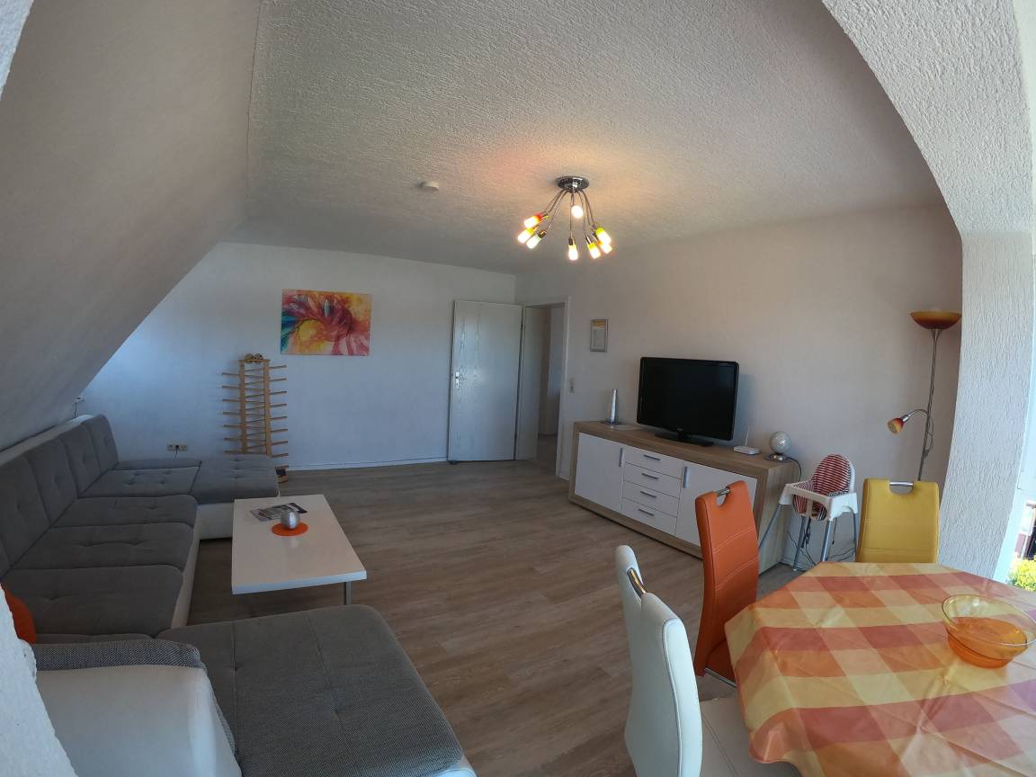 Im Wohnzimmer ist außerdem Platz für ein Zustellbett für die 5.Person.