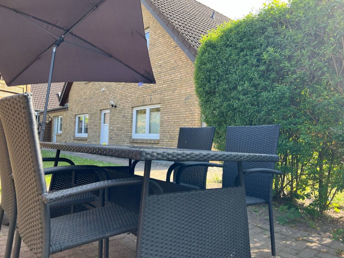 Im Garten hinter dem Haus steht eine Terrasse mit Grillplatz und moderner Gartensitzgruppe zur Verfügung.
