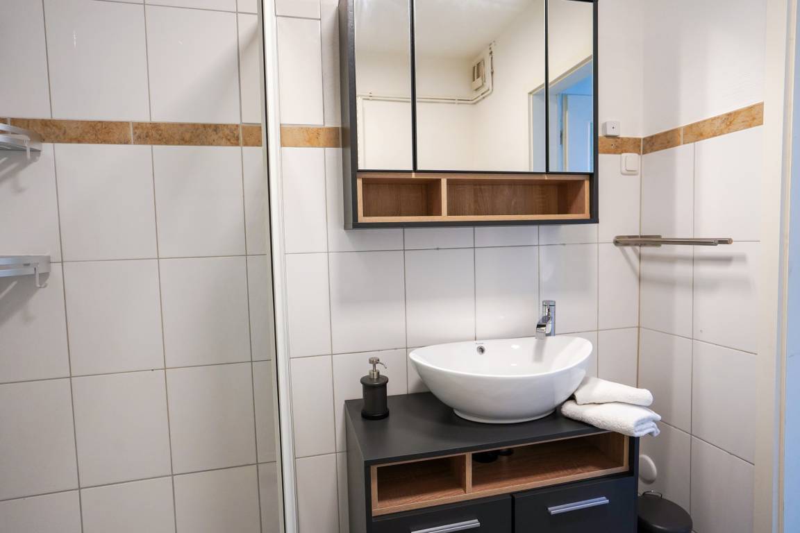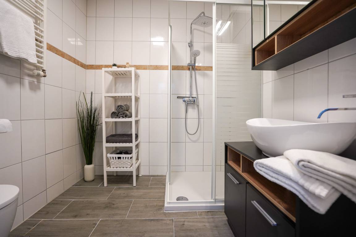 Des weiteren steht Ihnen ein hell gefliestes Duschbad zur Verfügung.