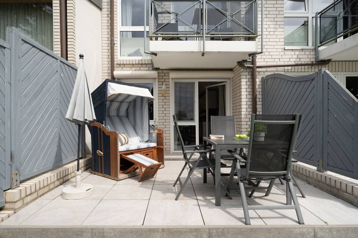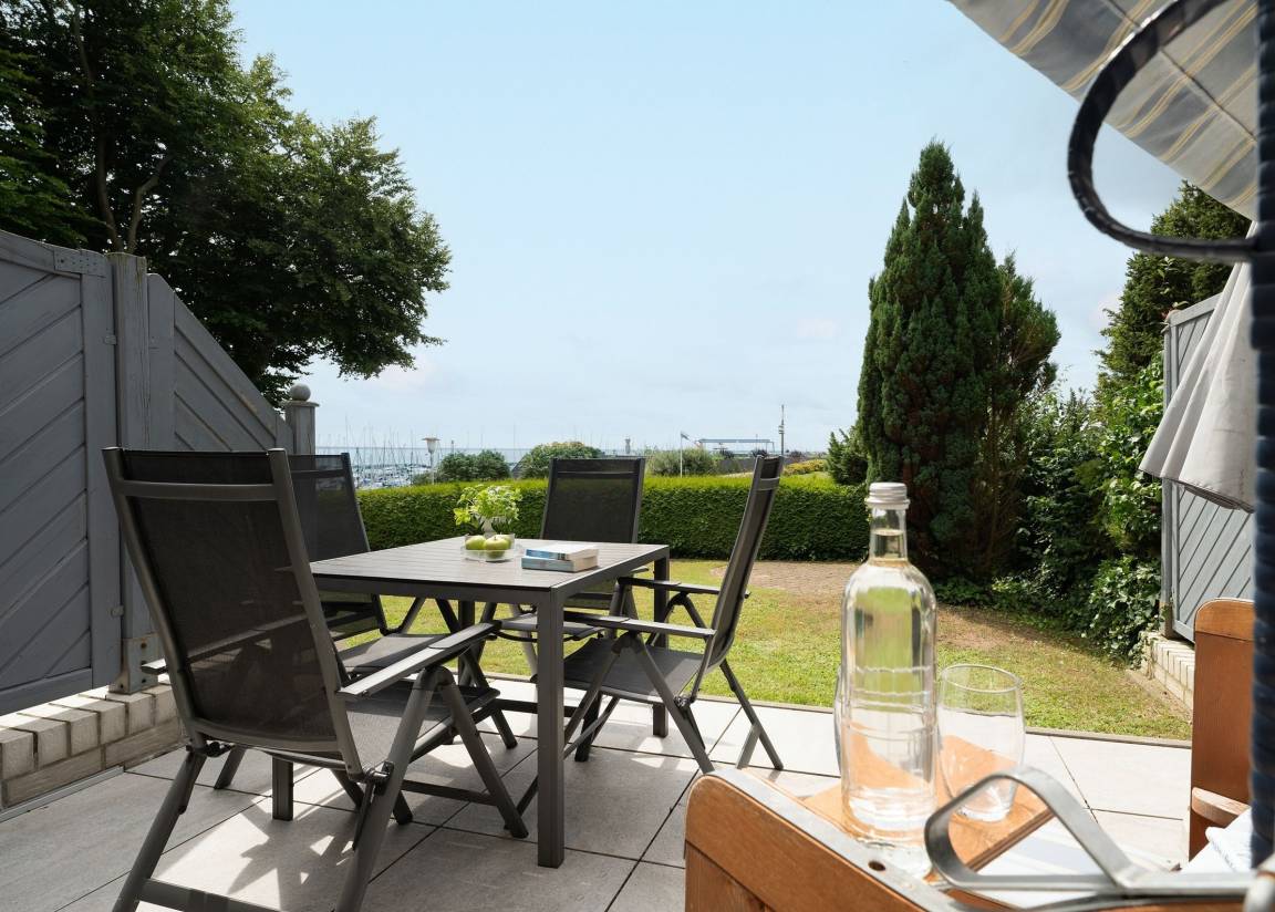 „Gemütlich eingerichtete Wohnung im Erdgeschoss. Von der Terasse Blick auf den Yachthafen.“