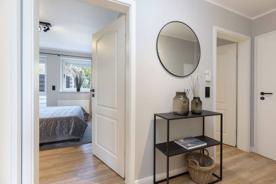 Diese moderne, top ausgestattete Erdgeschosswohnung umfasst ca. 47 m² und ist mit 2 Schlafzimmern für bis zu 4 Personen ausgerichtet. Sie liegt auf der rechten Seite des Hauses.