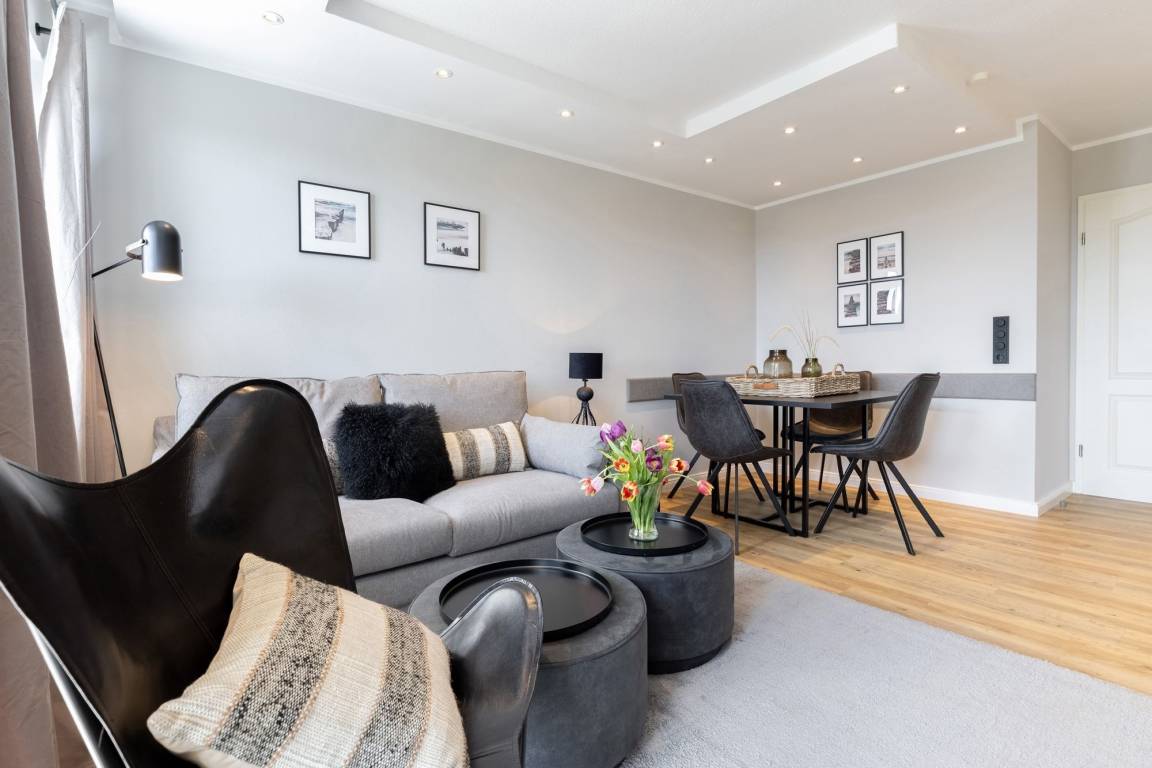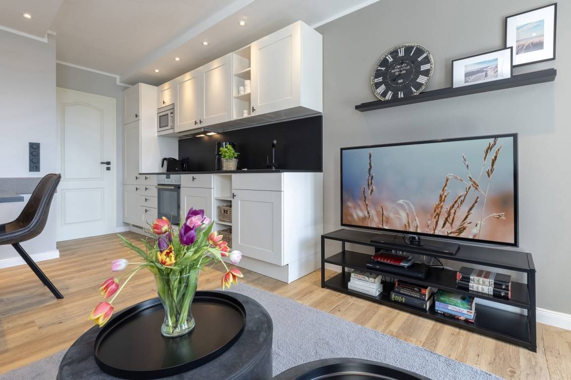 „Schönes, kleines und sehr gemütlich eingerichtetes Appartment in guter Lage. Perfekt für Spaziergänge an der Promenade, auch als Rückzugsort, sollte es mal regnen. Das Appartment ist neu eingerichtet und sehr geschmackvoll gestaltet, alle Geräte vorhanden.“