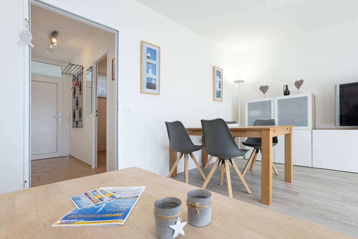 Eine große Wohnanlage direkt am Deich, etwas abseits vom Trubel, daher sehr ruhig. Etwa 15 Minuten zur Ortsmitte und zum Kurzentrum. Direkte Strandlage. 100 m zum Strand und ca. 3 min. zum Hundestrand. Waschmaschine und Trockner gegen Gebühr.