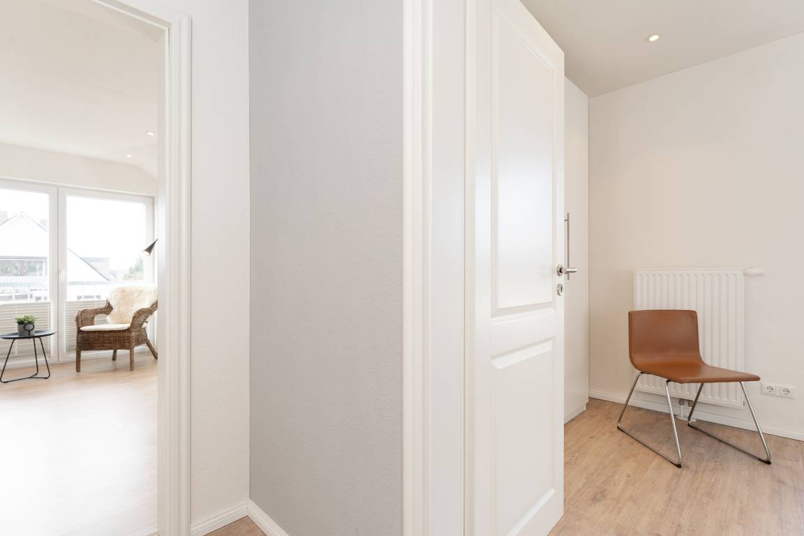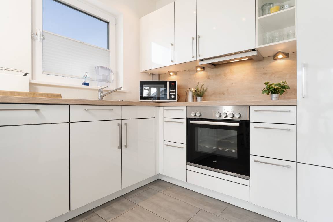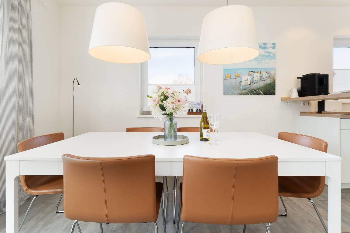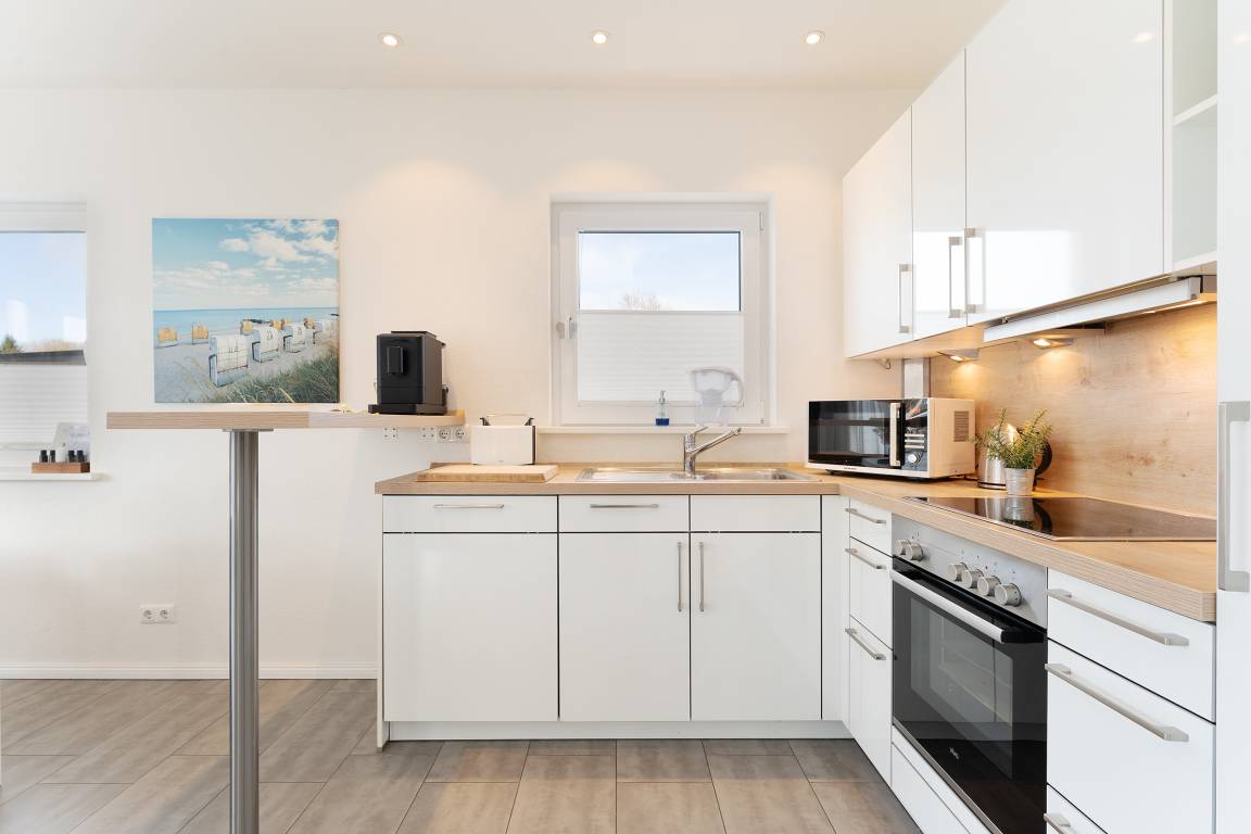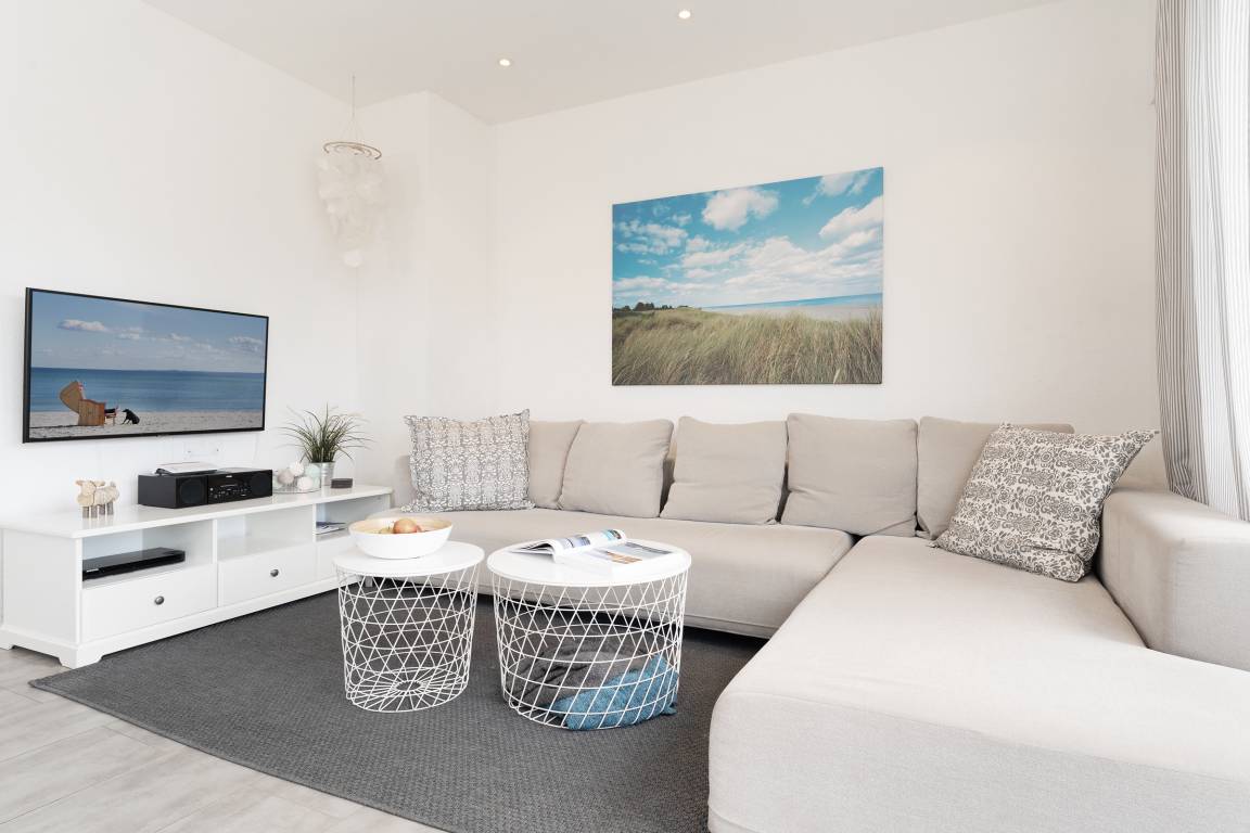 Beim Betreten des Ferienhauses gelangen Sie in den weitläufigen Wohnbereich, der mit bequemer Sofaecke, TV und viel Tageslicht zum Verweilen einlädt. Von hier aus haben Sie Zugang zur Terrasse, auf der Sie sonnige Stunden an der frischen Ostseeluft genießen können – perfekt für ein Frühstück im Freien oder einen entspannten Tagesausklang. Die offen gestaltete Küche ist vollständig ausgestattet und bietet alles, was Sie für die Zubereitung Ihrer Mahlzeiten benötigen. Der angrenzende Essbereich lädt zu gemeinsamen Essen und geselligen Abenden ein. Das Ferienhaus verfügt über drei separate Schlafzimmer, die jeweils komfortabel eingerichtet sind und erholsamen Schlaf garantieren – ideal auch bei voller Belegung. Das moderne Badezimmer rundet den Rundgang ab und bietet ausreichend Platz für die tägliche Urlaubsroutine.
