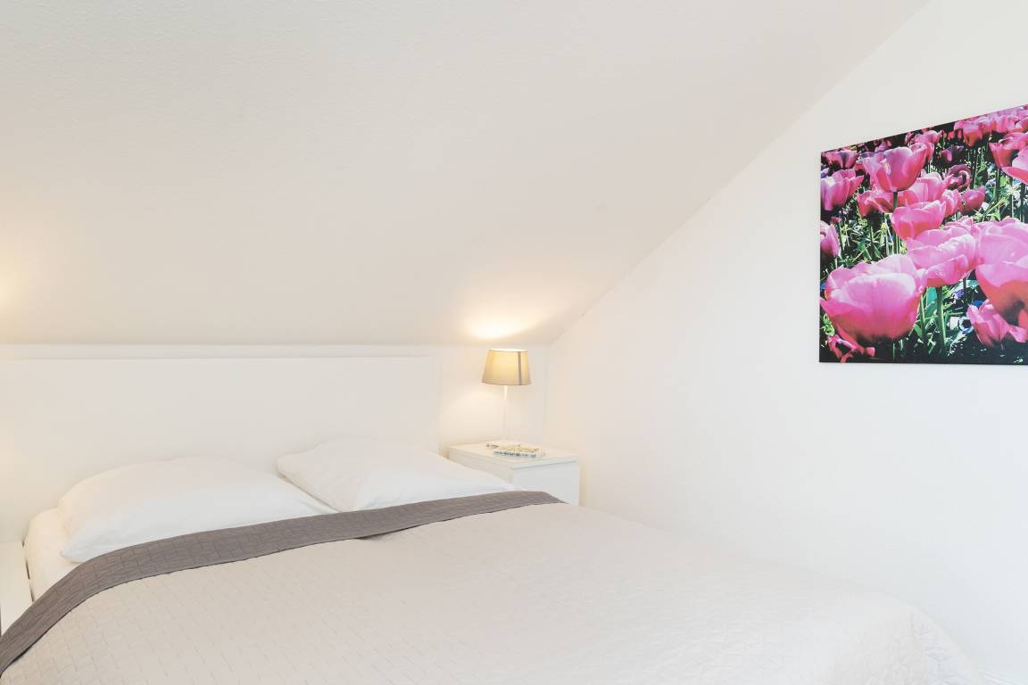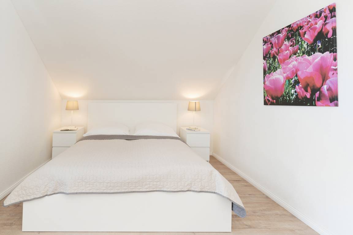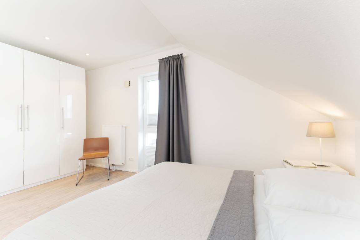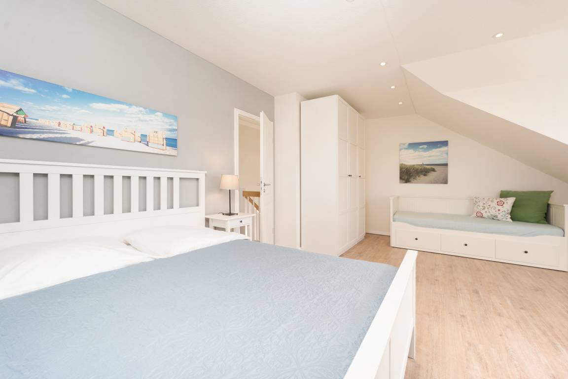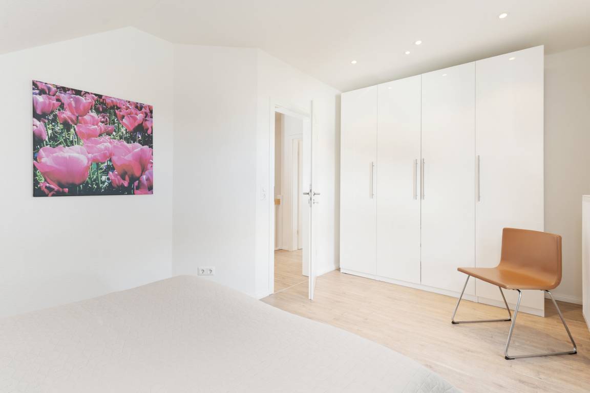 Schlafzimmer 2 (OG): 1 Doppelbett (160x200 cm), Kleiderschrank, Verdunkelung: Plissee und Vorhang, Platz für ein Babybett vorhanden