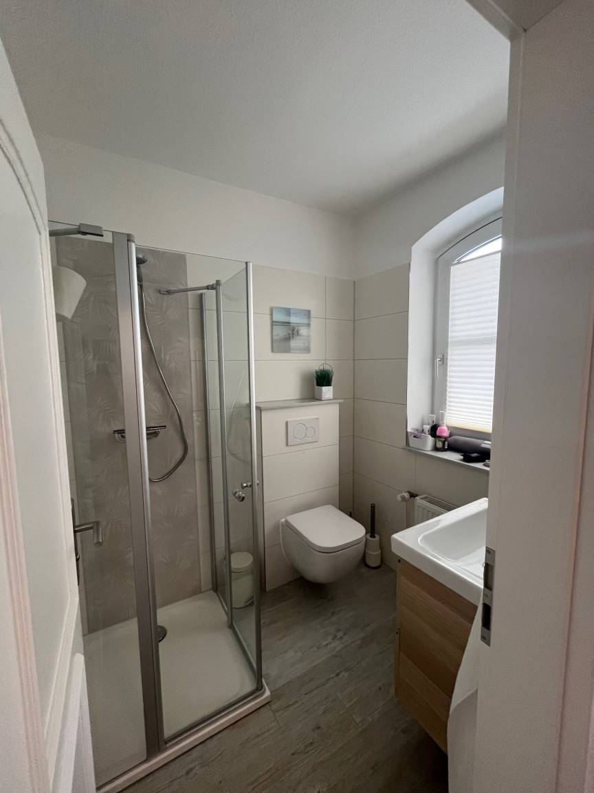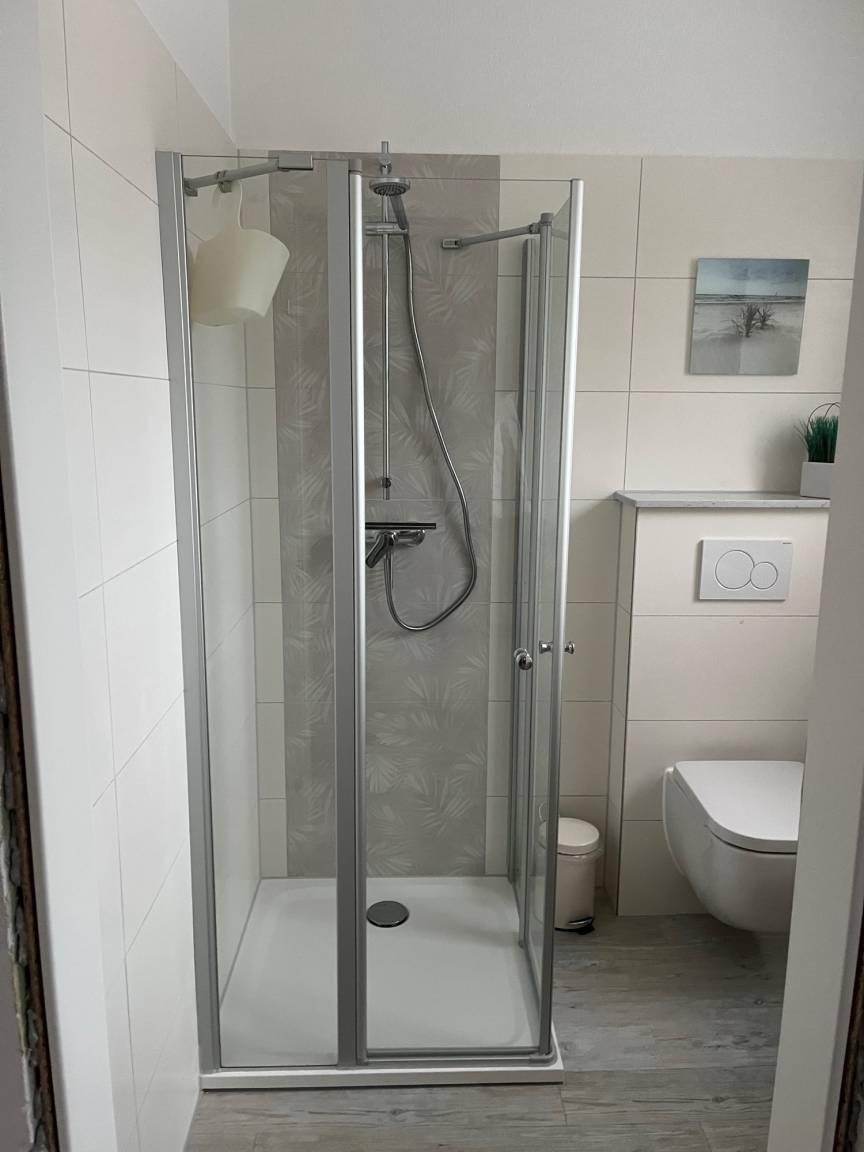 Vom Strandaufenthalt, sportlichen Aktivitäten und / oder ausgedehnten Wanderungen erschöpft können Sie sich in dem Wannenduschbad (1. OG) oder in der Dusche (Paterre) erfrischen.