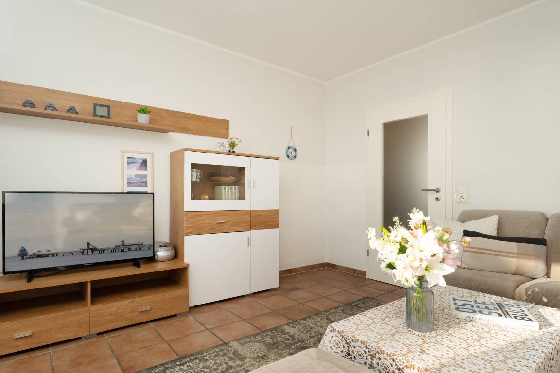 „Uns hat es in der Wohnung an nicht's gefehlt. Die Küche ist für eine gemütliche Urlaubszeit ausreichend, es gibt ja an jeder Ecke leckere Restaurants. Im Elternschlafzimmer sind die Matratzen schon ein wenig weich. Der Blick auf die Seebrücke ist ein Traum. Ein schöner Urlaub für zwei mit Hund.“