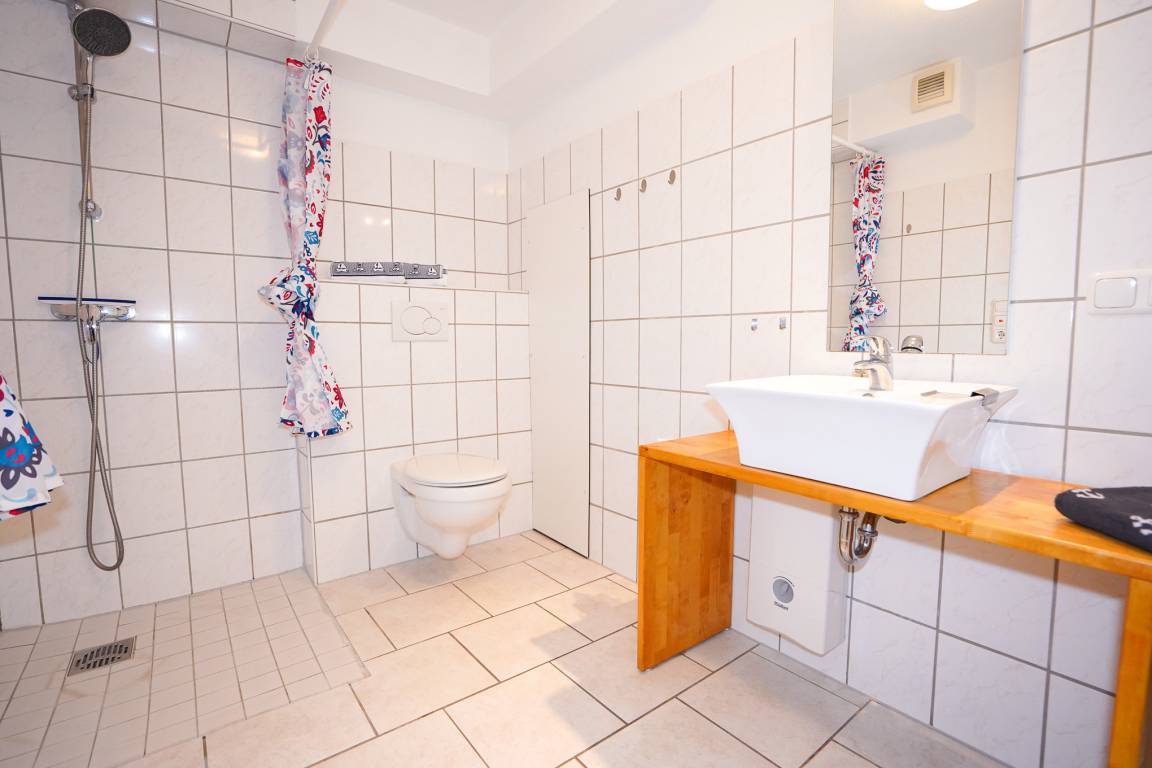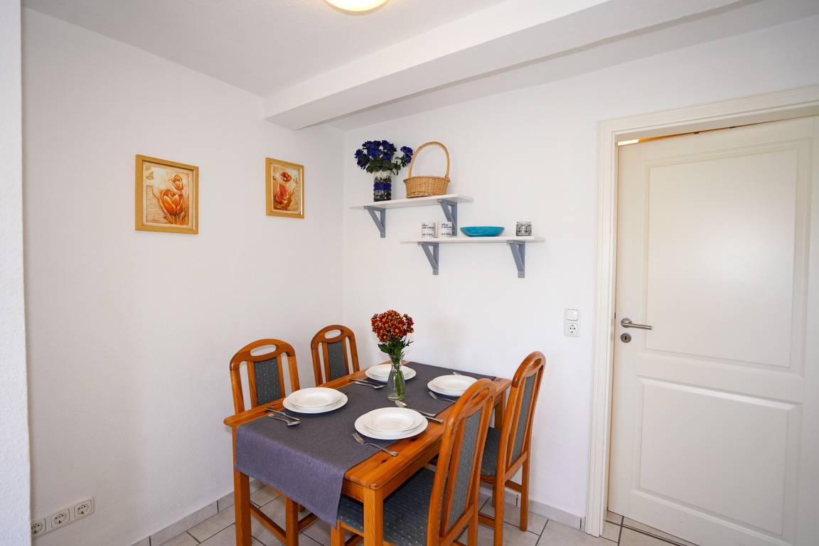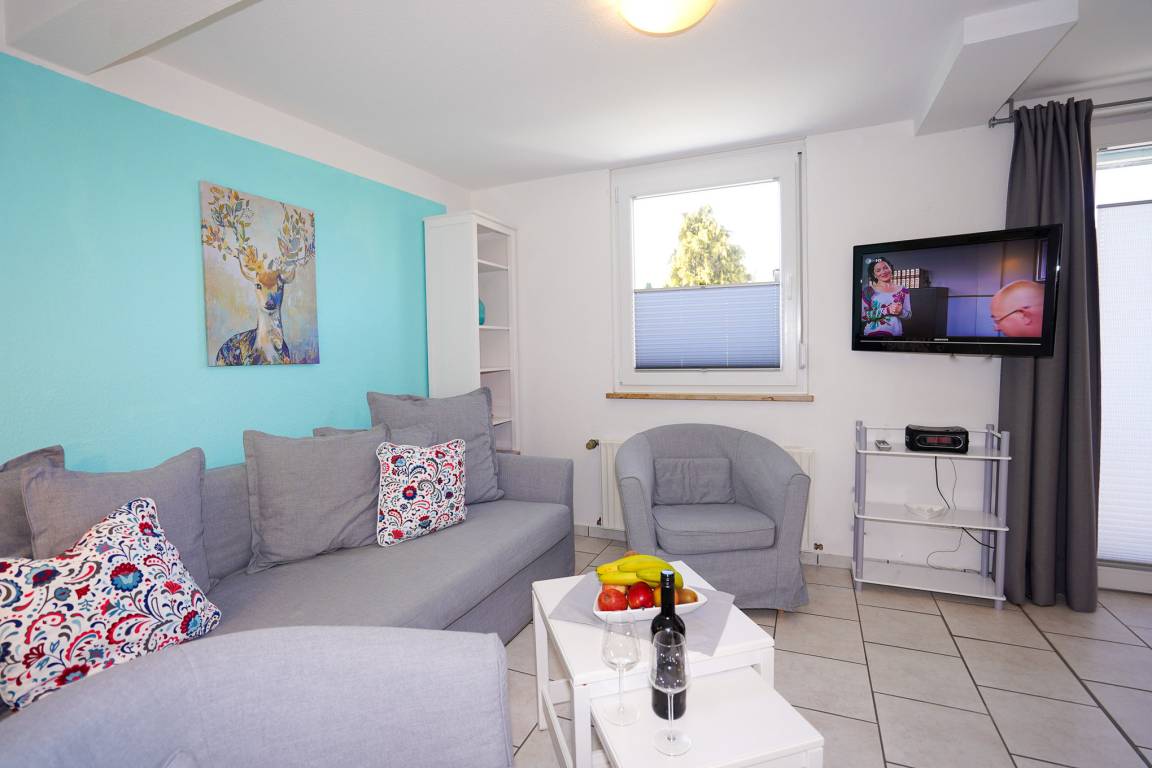 Die modern ausgestattete Wohnung mit einer Größe von ca. 42 qm ist für bis zu 4 Personen eingerichtet. Im Wohnzimmer mit SAT-TV befinden sich eine Schlafcouch, zwei gemütliche Sessel, sowie ein Esstisch mit Stühlen. In der Küchenzeile finden Sie neben Backofen und den üblichen Elektrogeräten auch eine Spülmaschine und eine Mikrowelle vor. Neben dem Schlafzimmer mit Doppelbett und Kleiderschrank steht Ihnen ein barrierefreies Duschbad mit WC zur Verfügung.