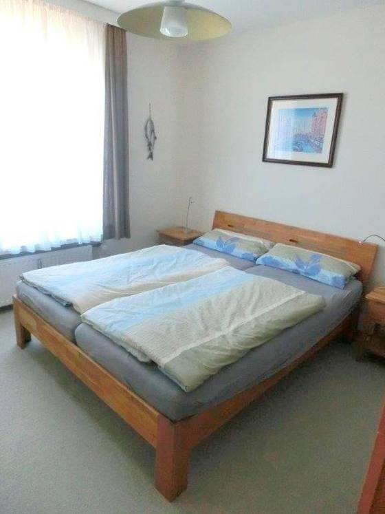 Das Schlafzimmer hat ein Doppelbett (1,60 m x 2 m breit, 2 Matratzen auf Lattenrosten, ohne Fußende), ein Tagesbett (0,90m x 2,00m), das sich gut zum Schlafen eignet sowie viel Schrankplatz. Die separate kleine Küche ist voll ausgestattetet mit 4-er Ceranfeld-Herd, Backofen, Kühl-Gefrierschrank und Spülmaschine. Das moderne Bad hat eine Klarglasdusche mit relativ niedrigem Einstieg, Handtuchheizung und WC.