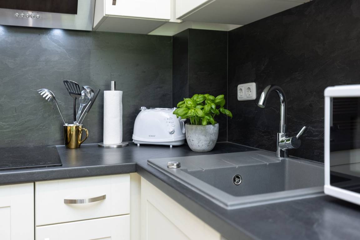 „Eine sehr schöne, saubere Wohnung. Die Ausstattung der Küche könnte etwas besser sein. (z. B. Brotkörbchen, Schale für Obst, etwas mehr Besteck).“