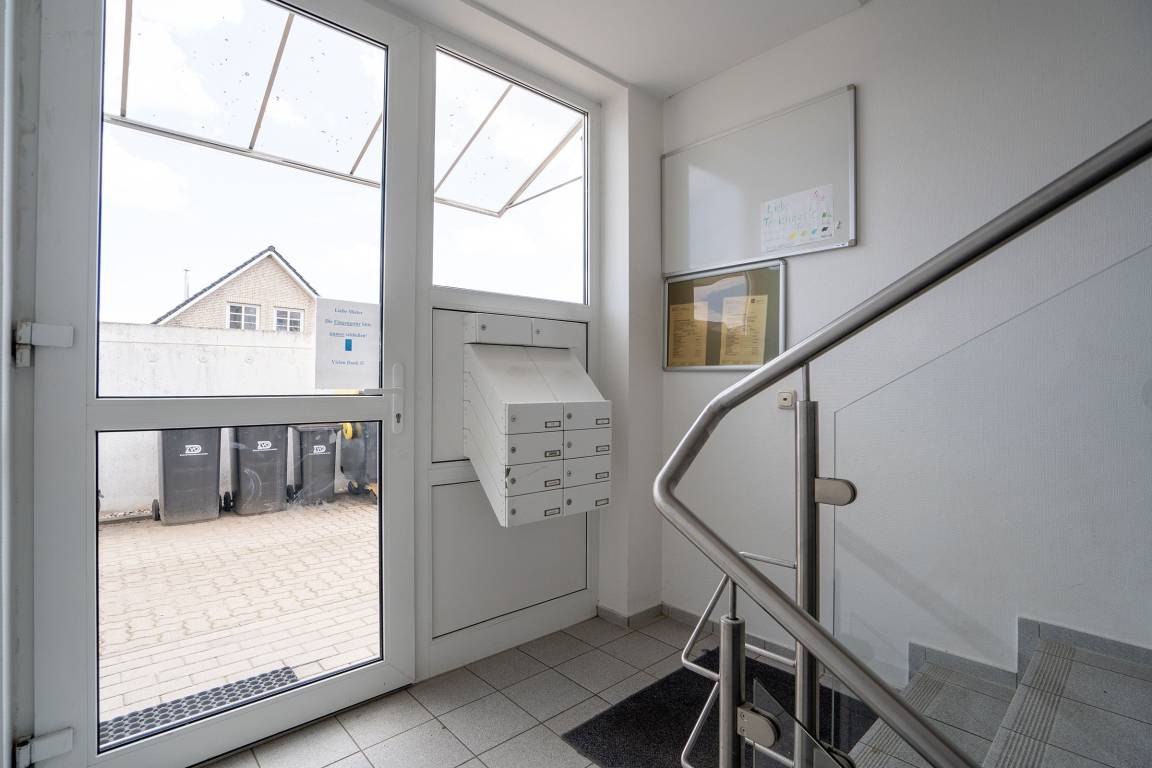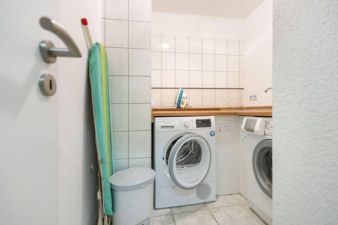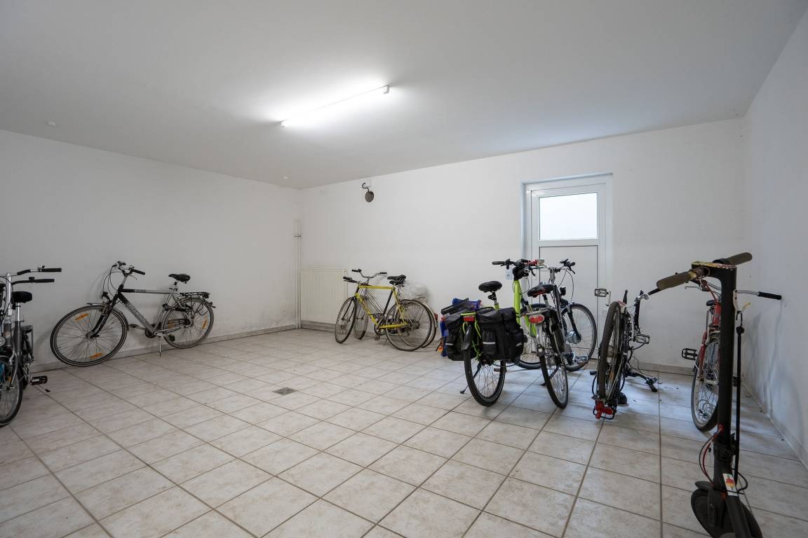 Ein PKW-Außenstellplatz direkt vor der Haustür ist für Sie reserviert. Ihre Fahrräder können Sie im Fahrradkeller sicher unterbringen. Wichtig: Der Fahrradkeller kann nur über eine Treppe (10 Stufen) erreicht werden. Im Keller befindet sich auch ein Gemeinschaftswaschraum mit Waschmaschine und Trockner.
