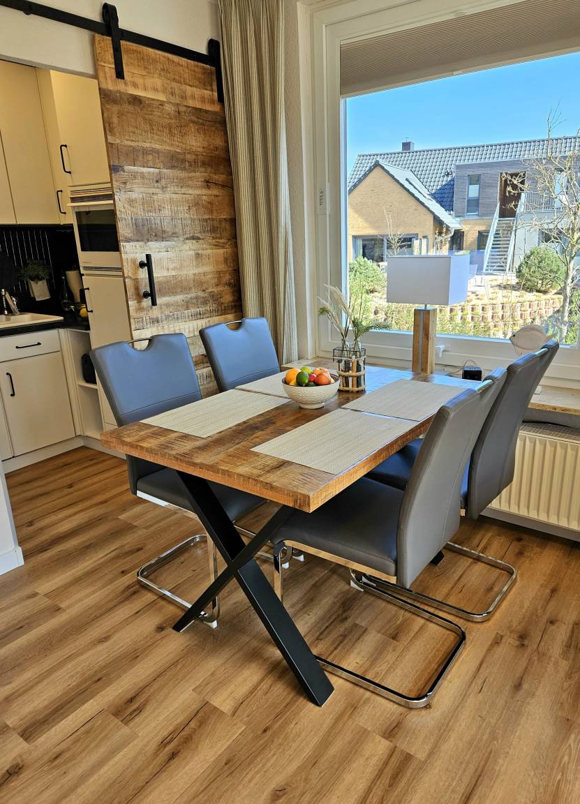 Die gemütliche Ferienwohnung ist perfekt auf zwei Personen zugeschnitten und überzeugt durch ihre helle, freundliche Atmosphäre. Im offenen Wohn- und Essbereich lässt es sich gut entspannen, und auch der Balkon mit Sitzmöbeln bietet Platz für ruhige Momente – ob morgens oder abends.