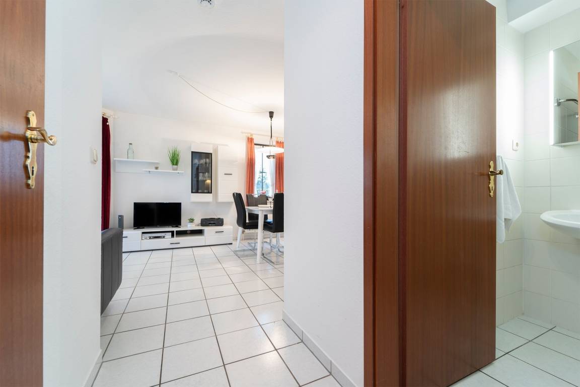„Die Wohnung ist für drei Personen gut geeignet, einzig der Außenbereich ist sehr klein. Der dazugehörige Parkplatz ist zu eng für ein größeres Auto, da die Hecke zu breit ist. Alles in allem aber (auch durch die hervorragende Lage) eine nette Wohnung.“