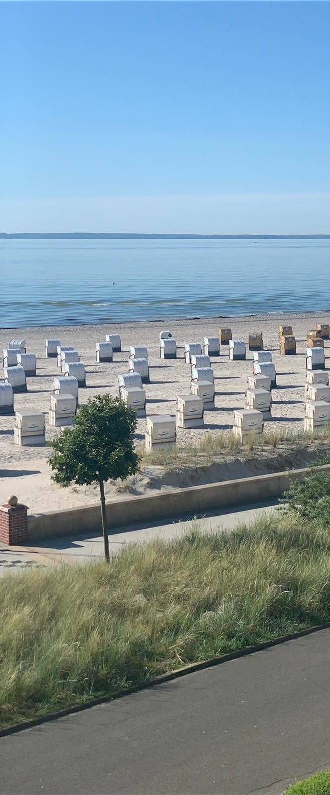Einmal in die Sterne blicken und romantisch zu Zweit eine ganze Nacht am Strand verbringen. Der Korb steht nah an der Düne und der Promenade im Windschutz mit Blick auf die Ostsee.