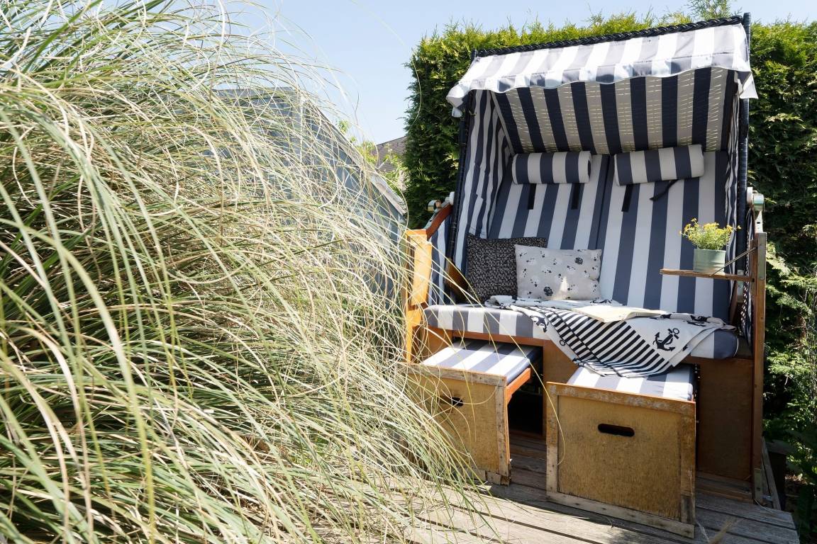 „Sehr schöne Wohnung mit guter und ausreichender Ausstattung (drinnen wie draußen). Besonders der Strandkorb hat uns gefallen, um die letzten Abendstunden in der Sonne zu genießen.“