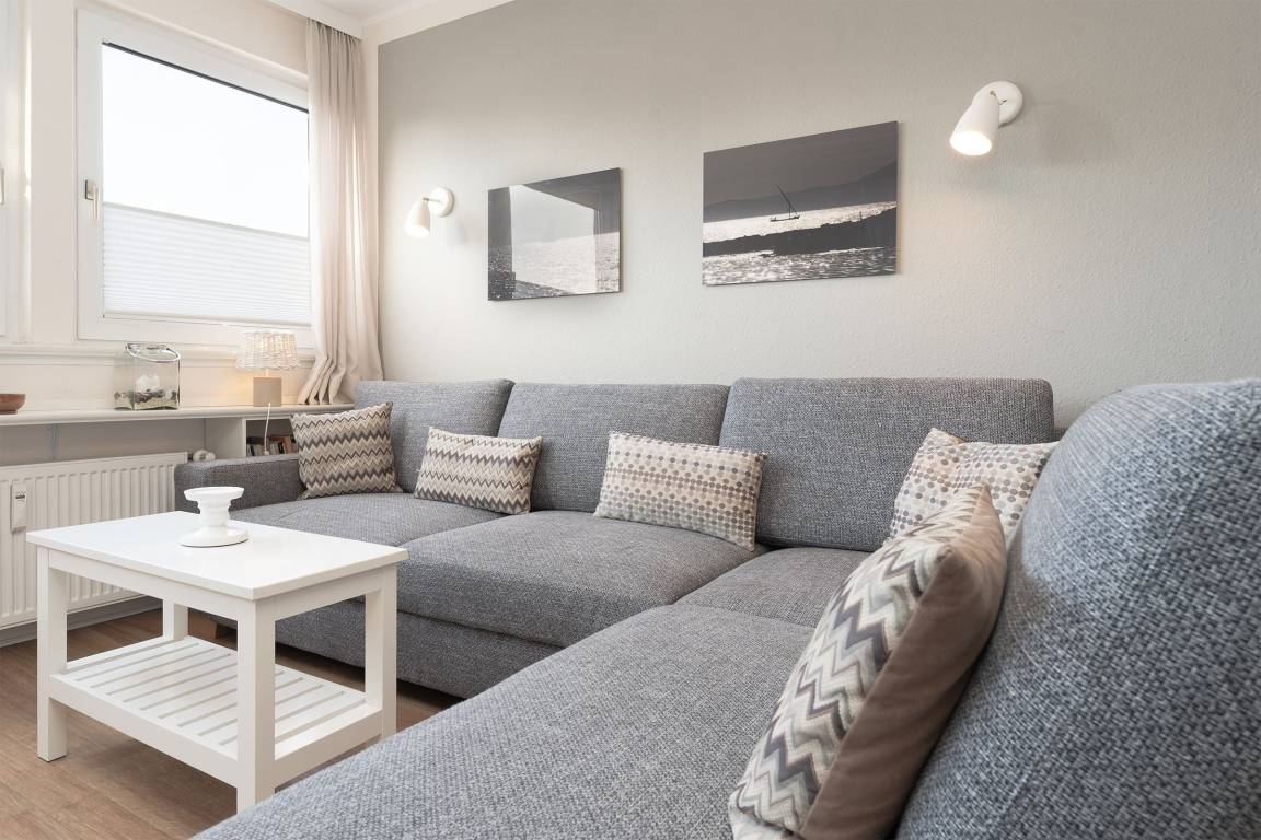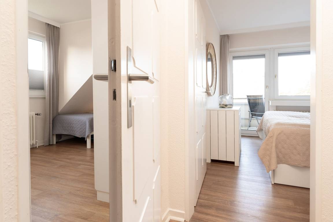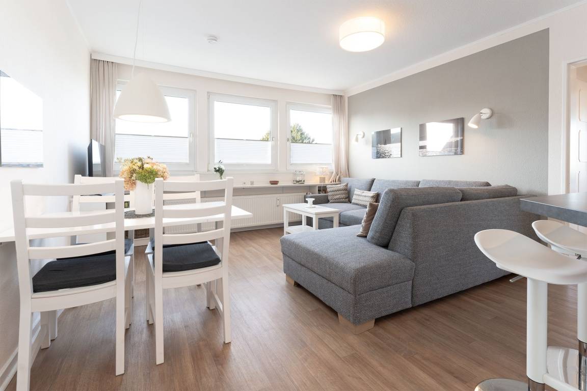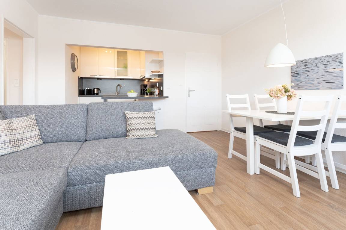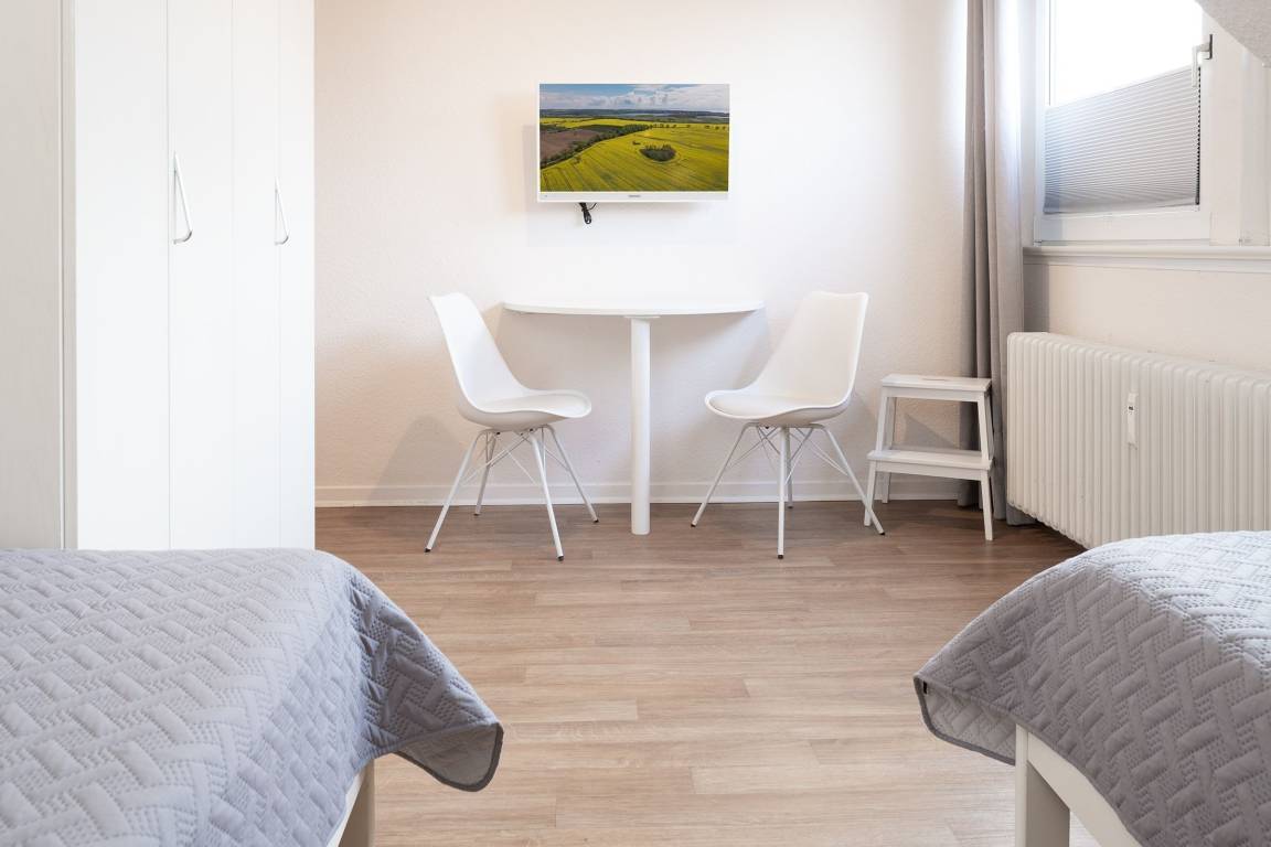 Ihre 3-Zimmerwohnung bietet mit 48m² Wohnfläche und smarter Einrichtung genügend Platz für bis zu 4 Personen. Das große Wohnzimmer, die moderne, gut ausgestattete Küche, einen Schlafraum mit 2 Einzelbetten (je 90x200 cm) und ein Schlafzimmer mit Doppelbett (2 x 80x200 cm) werden Ihre Wünsche erfüllen und Ihre Vorstellungen übertreffen. Ein komplett renoviertes neues Duschbad ist mit allem ausgestattet, was Sie für einen frischen Start in den Tag benötigen.