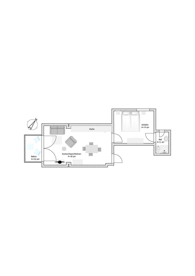 52 m² Ferienwohnung ∙ 1 Schlafzimmer ∙ 2 Gäste