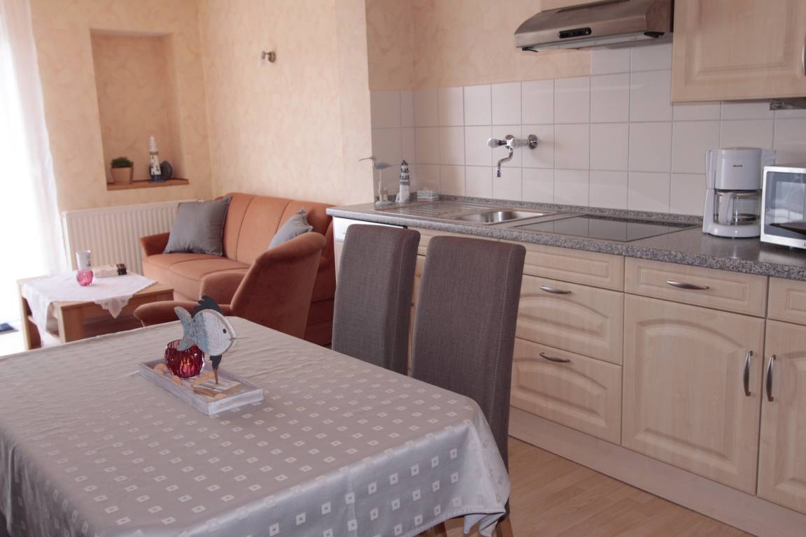 Das Appartement bietet Ihnen ein komfortables, zentrales und strandnahes Plätzchen zum Wohlfühlen. Direkt am Deich in einer Sackgasse. Abgeschlossene, modern eingerichtete Wohnung mit 2 Zimmern, ca. 52 qm für 2 Personen. Im Wohnzimmer stehen ein Sofa mit Sessel und Beistelltisch sowie ein 32 Zoll Farbfernseher, zudem ein Radio CD Player. Die komplett eingerichteter Küchenzeile, mit Spülmaschinen. Ein Kühlschrank mit Gefrierfach, Mikrowelle, Kaffeemaschine, Toaster, Wasserkocher, Geschirr, Töpfe, Pfannen und Gläser gehören auch dazu. Ein Esstisch mit Stühlen steht zur Verfügung. Das Schlafzimmer hat ein Doppelbett in Komforthöhe sowie einen großen Schrank. Das hell geflieste Duschbad hat einen Spiegelschrank für genügend Stauraum. Außerdem gibt es einen Balkon, Sat-TV, WLAN und einen Parkplatz für Ihr Auto am Haus. Haustiere auf Anfrage.