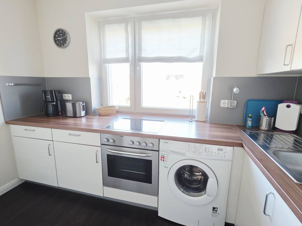 Die moderne Küche ist mit Cerankochfeld- Backofen, Geschirrspüler, Kühlschrank/ Gefrierfach, Waschmaschine/ Trockner und den üblichen Küchengeräten sehr gut ausgestattet.