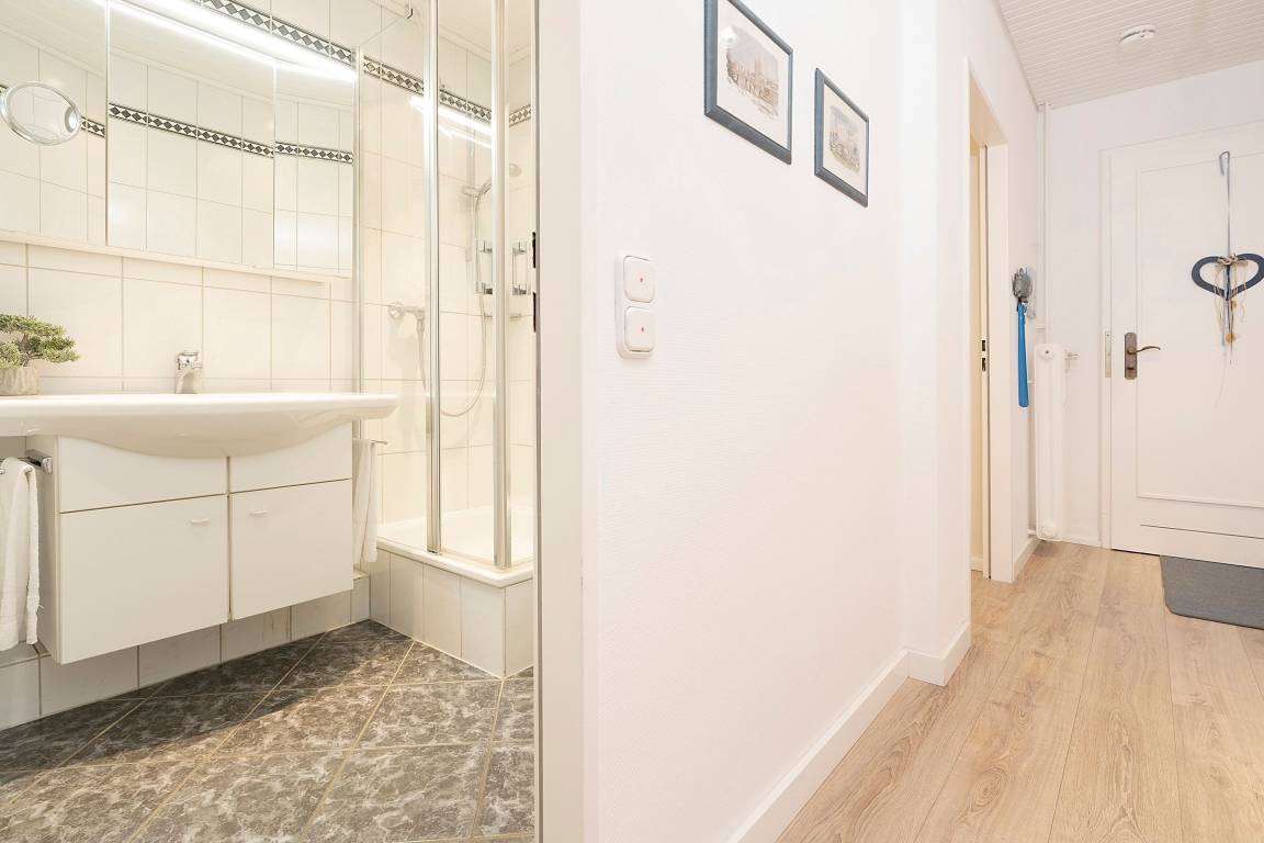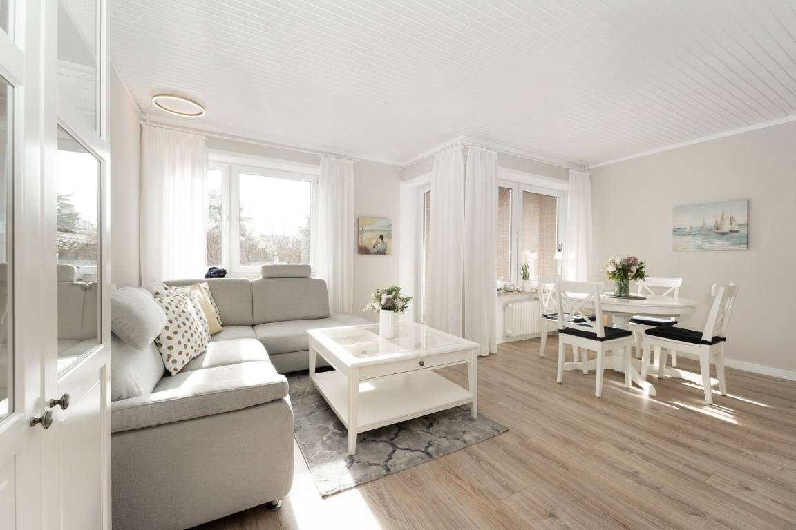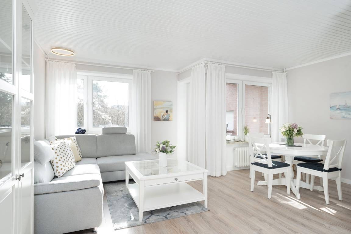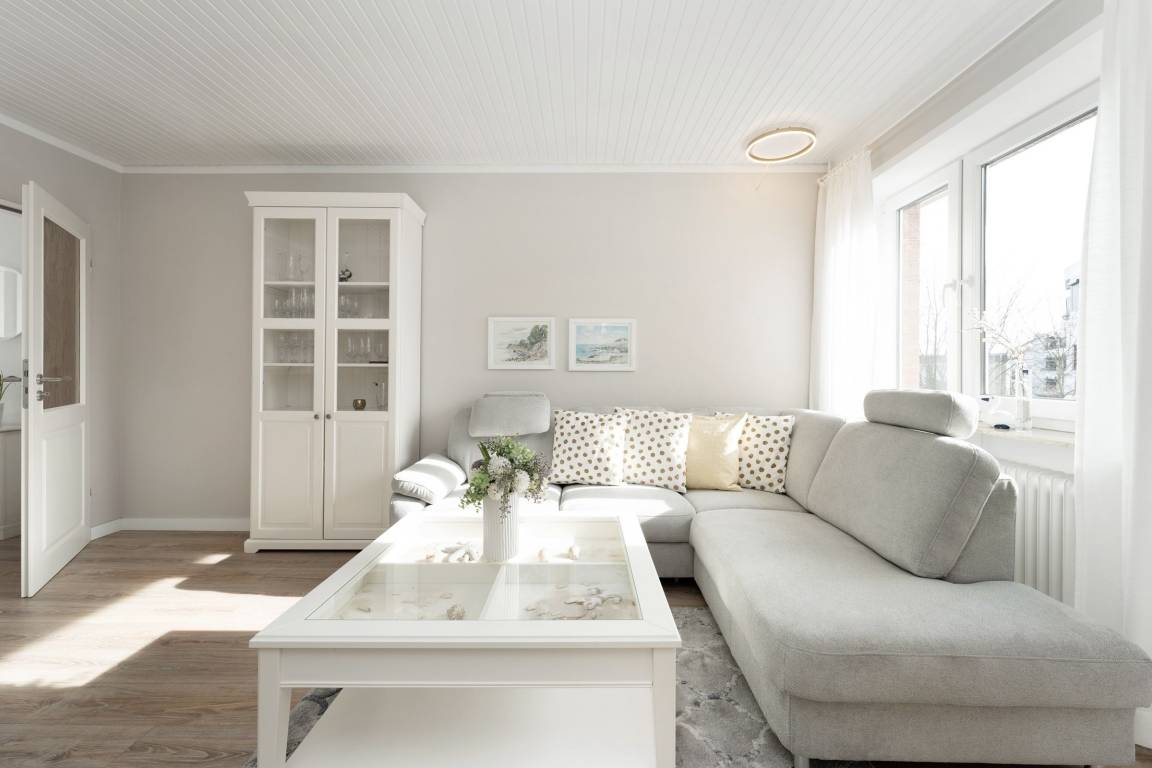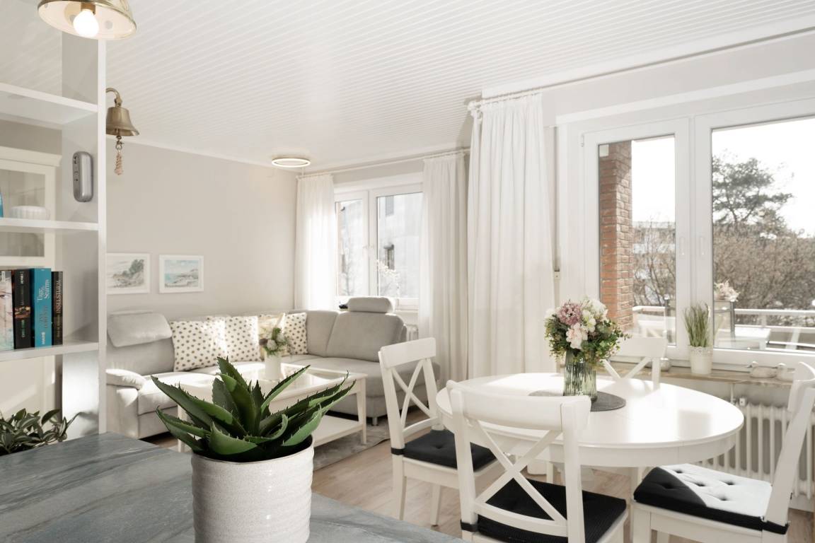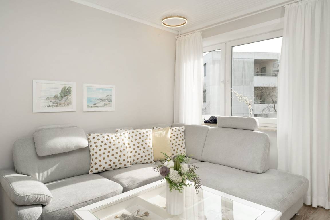 Fühlen Sie sich wohl in dieser sehr gepflegten und komfortablen 2-Zimmer-Wohnung mit Balkon in ruhiger und zentraler Sackgassenlage. Die Entfernung zum Strand und zu den Einkaufsmöglichkeiten beträgt nur ca. 3-4 Gehminuten.