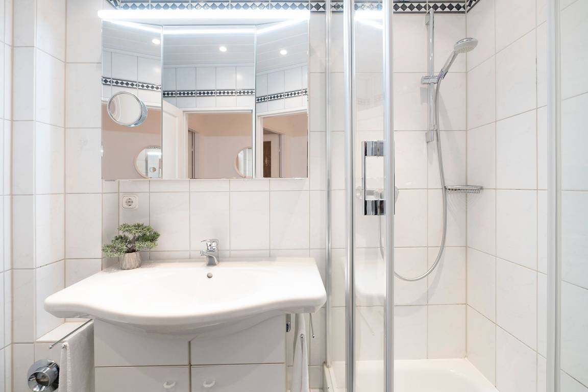 Im Wohnzimmer befindet sich zusätzlich zur hochwertigen, gemütlichen Sofalandschaft eine schöne Essecke. Offen zum Wohnbereich steht Ihnen eine gut ausgestattete Küche zur Verfügung. Das Schlafzimmer verfügt über ein Doppelbett (2x 90x200 cm) und einen geräumigen Kleiderschrank mit Spiegeltüren. Alles Räume sind mit Außenrollos zu verdunkeln. Das moderne Bad ist ausgestattet mit Dusche, beheizbaren Handtuchhalter und WC. Die gesamte Wohnung ist mit hochwertigem Laminat ausgelegt.