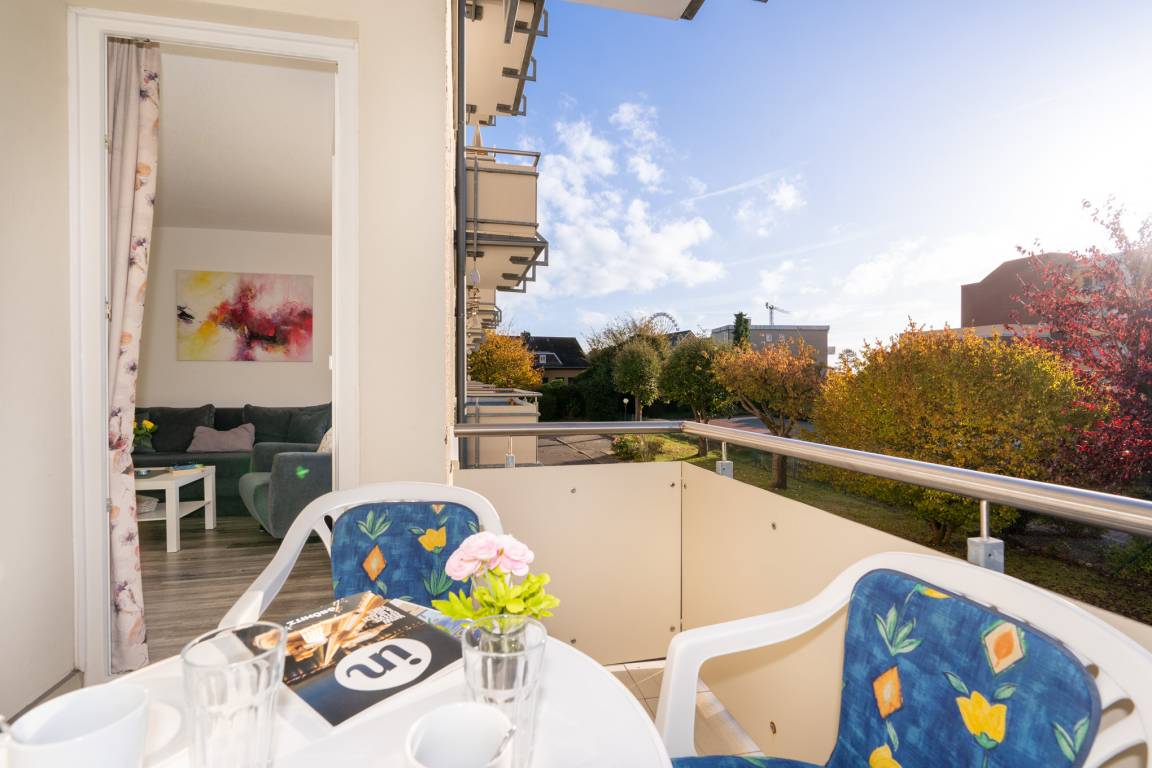 Diese 2-Zimmer-Ferienwohnung befindet sich im 1. Stock des Appartementhauses Wiking. Die Wohnung erreichen Sie bequem mit dem Fahrstuhl. Der neue Dünenpark von Grömitz mit diversen Restaurants, Bars, Einkaufsmöglichkeiten und Bäcker liegt nur wenige Schritte entfernt.