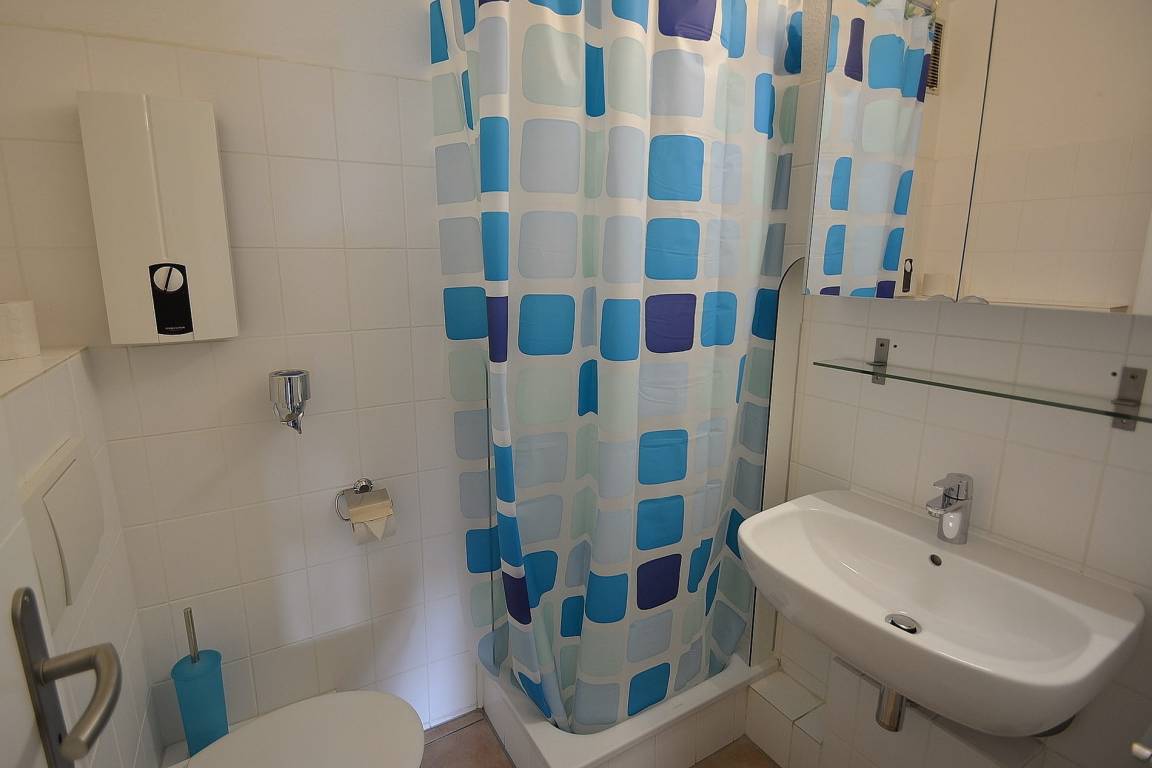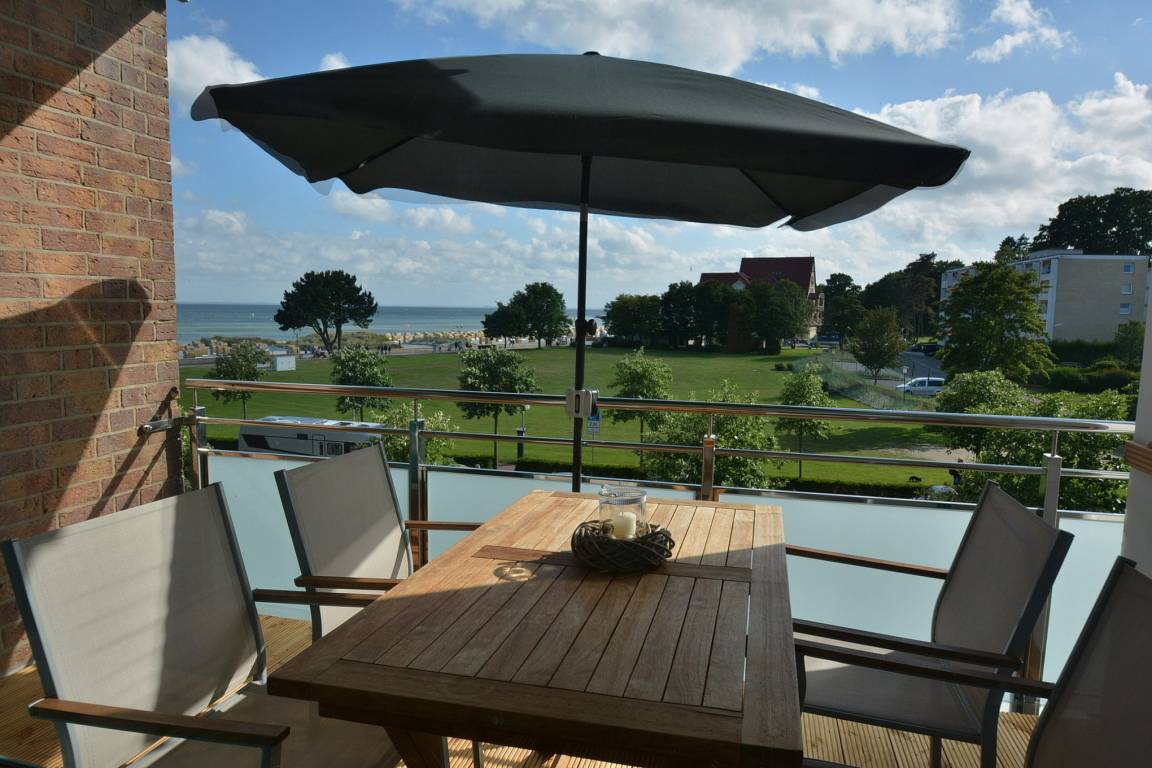 Kostenloser PKW-Stellplatz (sehr eng) in der Tiefgarage (max. Höhe: 1,90m) direkt am Haus. Schöner Balkon in süd-östliche Richtung mit Meerblick. Eine Waschmaschine und ein Trockner befinden sich im Haus und können gegen Gebühr genutzt werden. 2 Abstellplätze im geschlossenem Fahrradraum (Gemeinschaftseigentum).