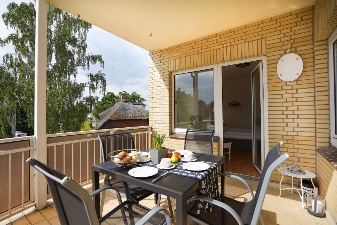 Großräumige strand- und zentrumsnahe Ferienwohnung im 1. Obergeschoss im Haus "Stranddistel" für bis zu 5 Personen -mit 2 Balkonen und freier Sicht in Richtung Strand!